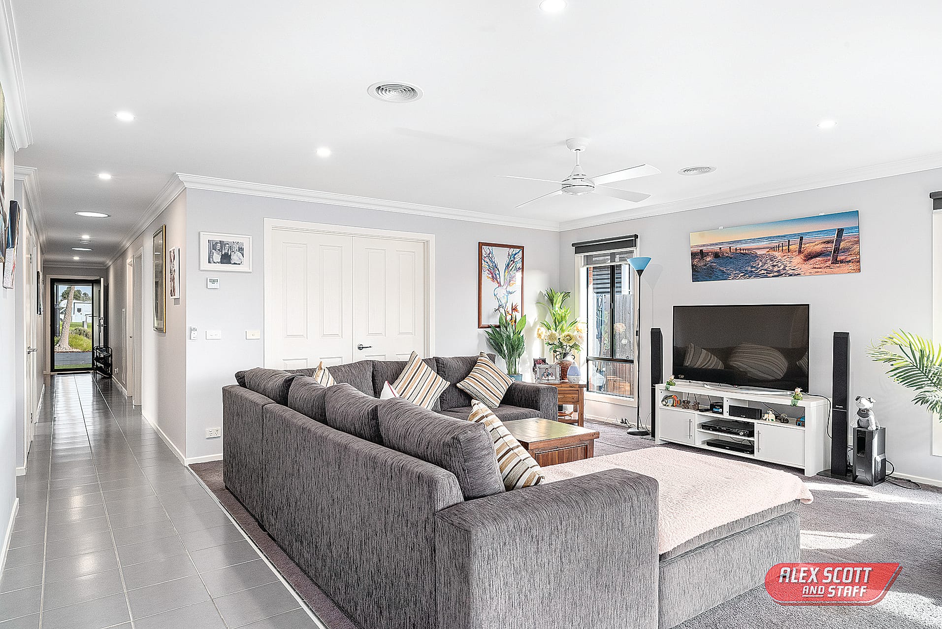 Comprising three bedrooms, master with ensuite and walk in robe, central family bathroom, a study, a spacious open plan living area with kitchen and dining area.