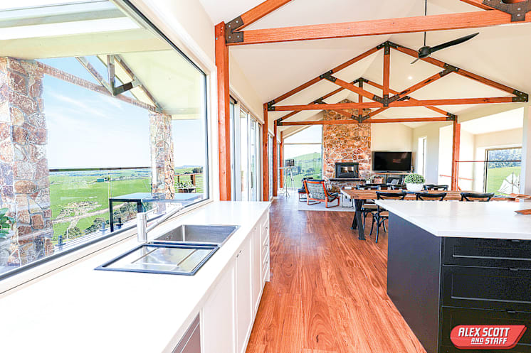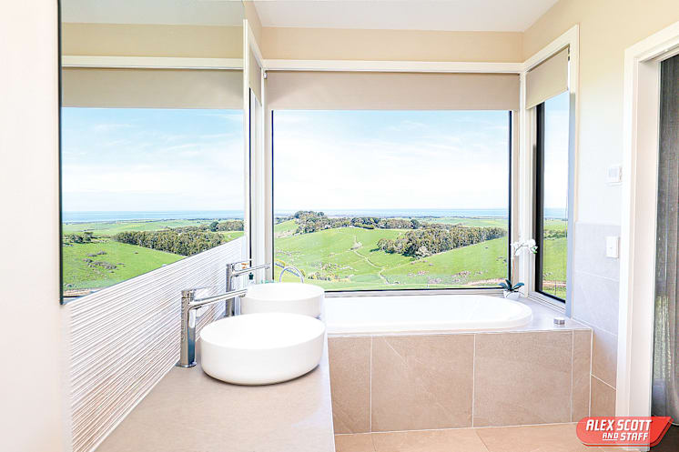 COMMANDING an elevated position atop approximately 103 acres of productive grazing land, this architect-designed residence offers a rare blend of privacy, craftsmanship, and panoramic beauty. From the moment you arrive along the sweeping driveway, the home reveals itself as a masterwork of design – where every angle, every room, and every window celebrates the breathtaking 180-degree views across Phillip Island to Wilsons Promontory.