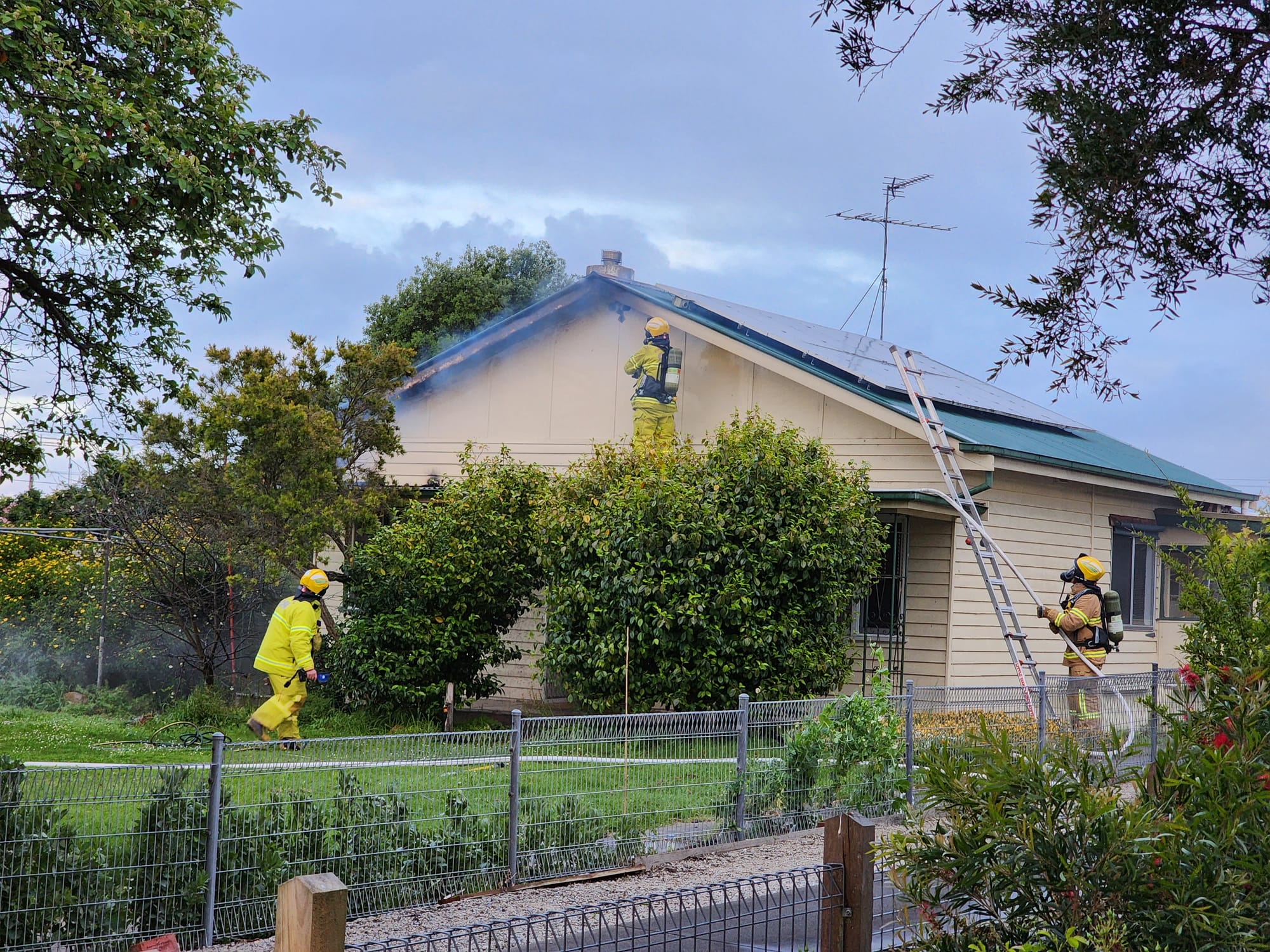 Fire crews attended alongside paramedics, police and AusNet with the power lead in to the property triggering the blaze in the fascia. The cause of the power lead in remains unknown.