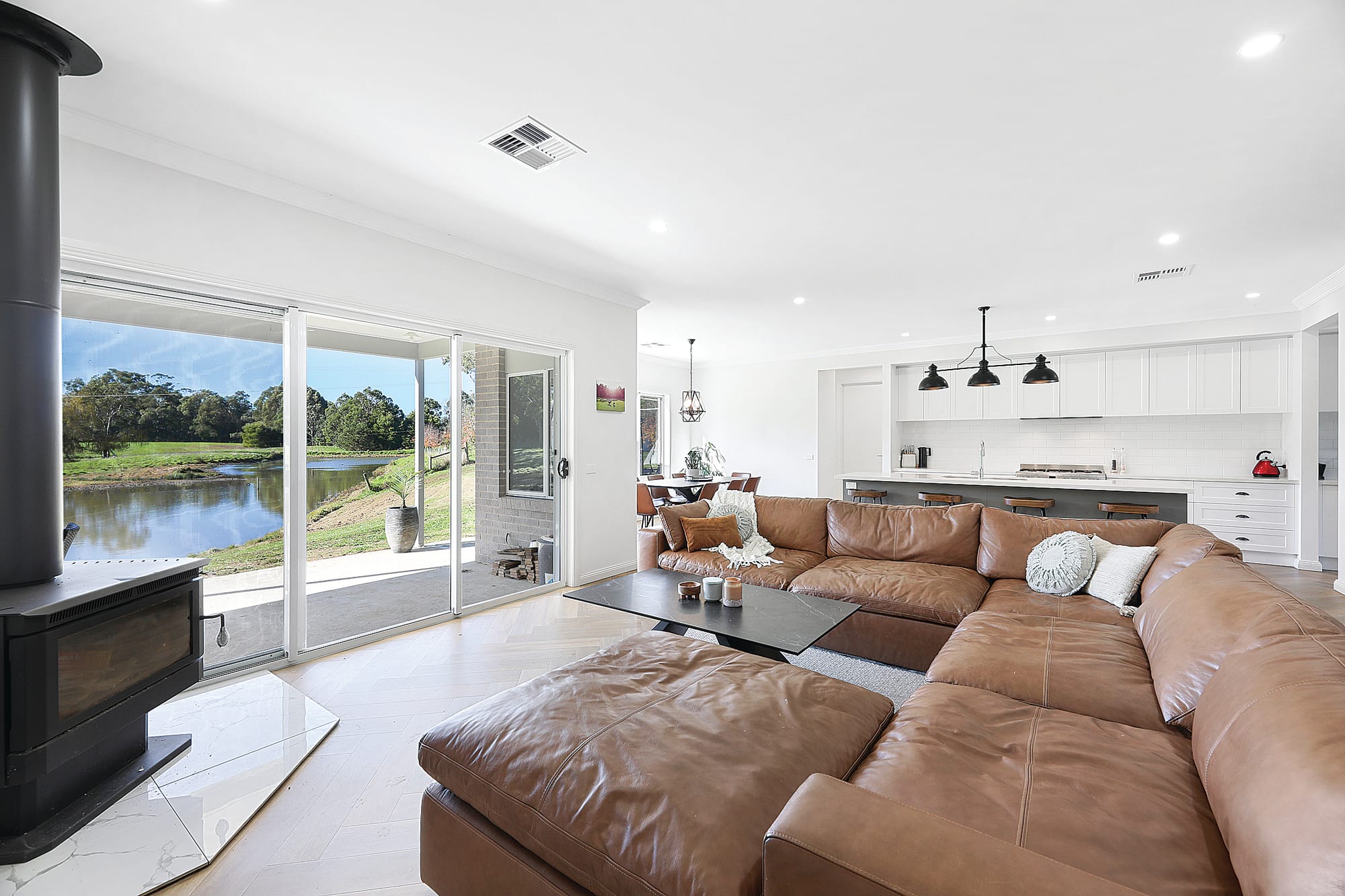 • Open-concept kitchen/dining/living area, with the warmth of a freestanding wood fire and the convenience of zoned ducted heating and cooling throughout