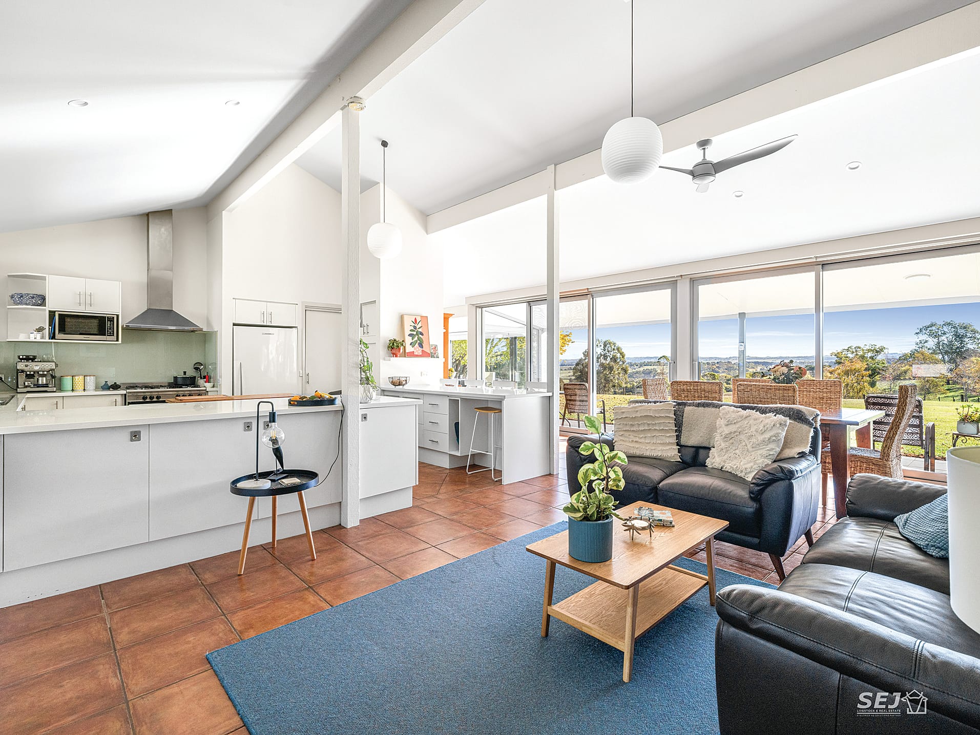 • The living areas enjoy the comforts of a wood heater, reverse cycle air conditioner (two), ceiling fans, with quality window furnishings throughout.