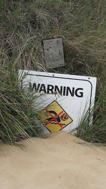 “Nature Parks has been working with LSV to review and make minor adjustments to the permanent signs, in line with a Council report (Bass Coast Shire Coastal Risk Assessment Report). Like the current signs, the new signs also show the no-swimming symbol and warn of dangerous currents and submerged objects.