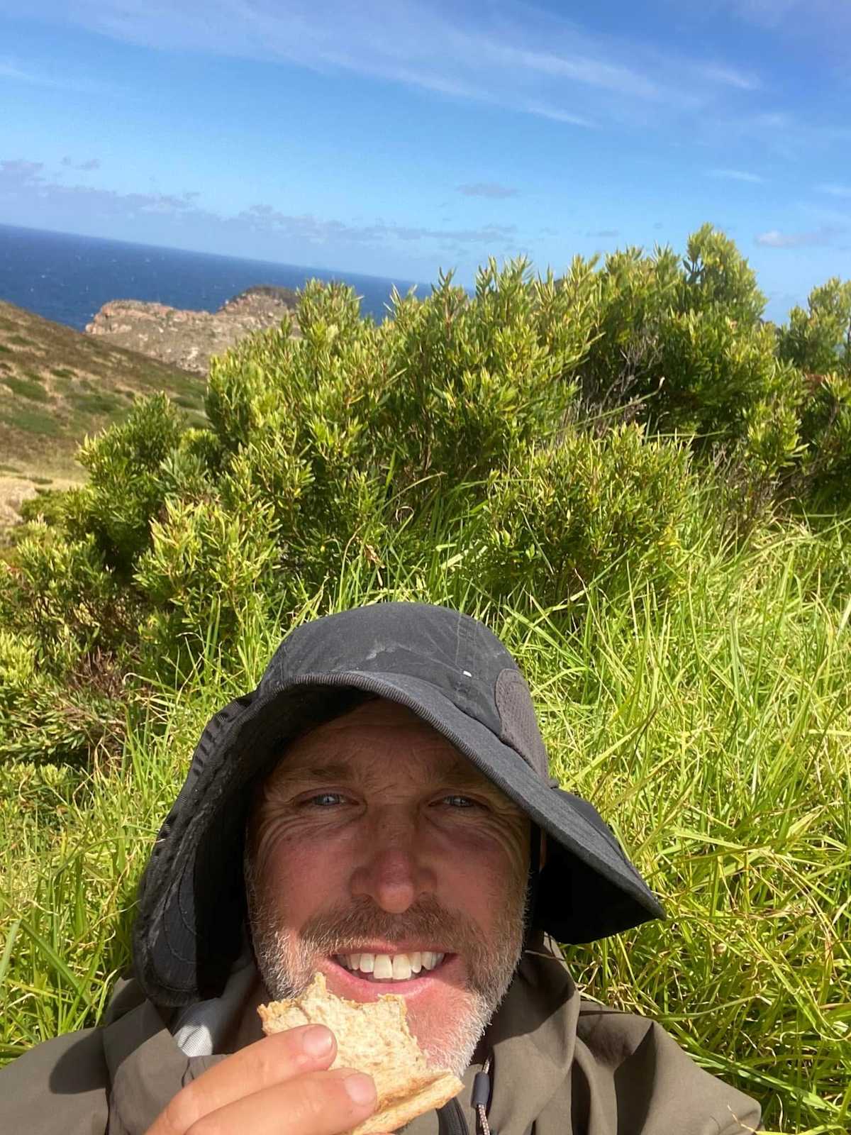Samuel McLennan, a 48-year-old business coach and personal mentor from Hobart, has only made it as far as Sealers Cove at Wilson’s Promontory so far but he might already have had the hairiest moment on the whole trip.
