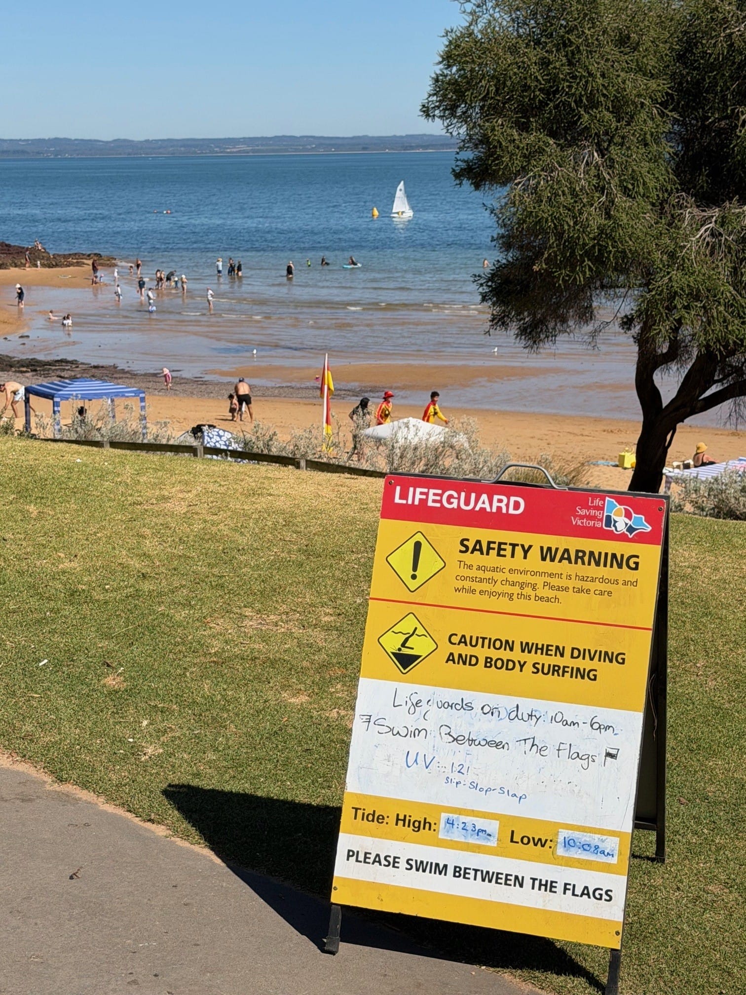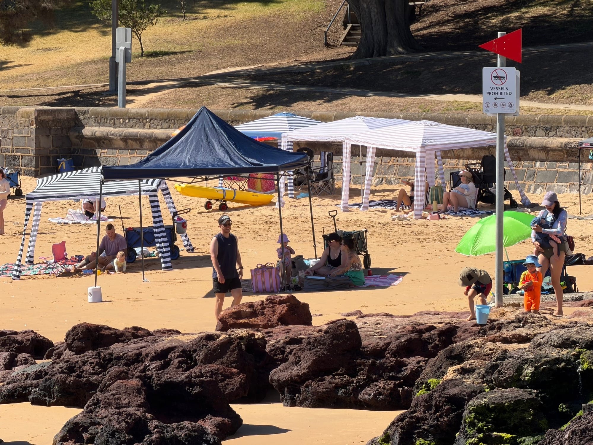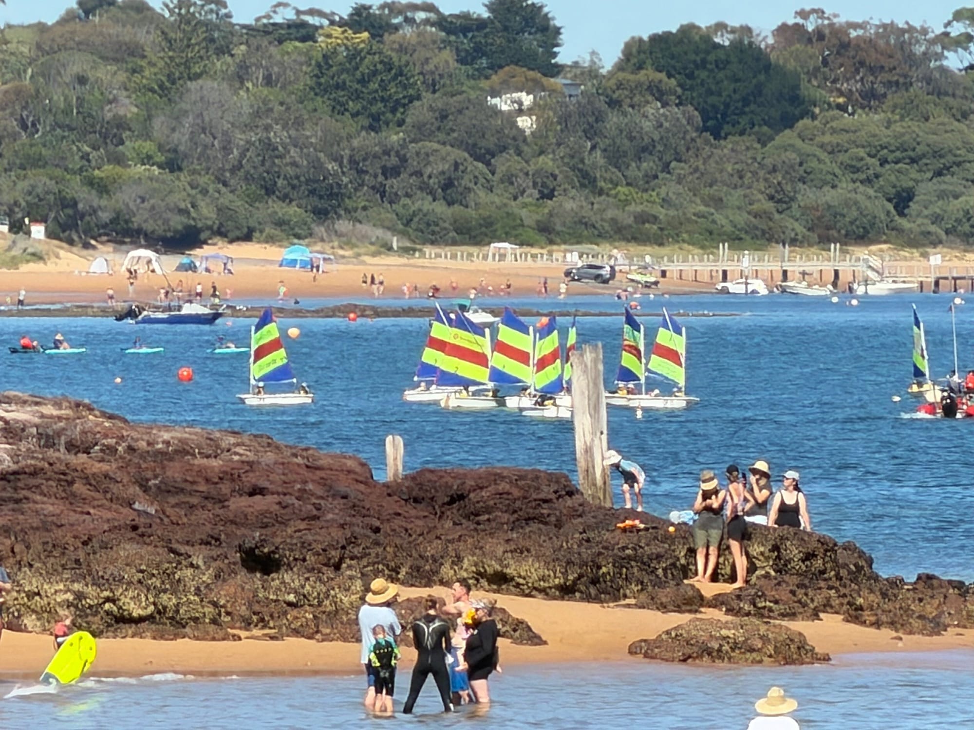 The Wildlifecoast Cruises ferry had arrived ahead of a cruise to Seal Rocks, there were sailboats out in the bay, three jetskis zooming quickly past and the surf lifesavers had set up their red and yellow swimming flags.