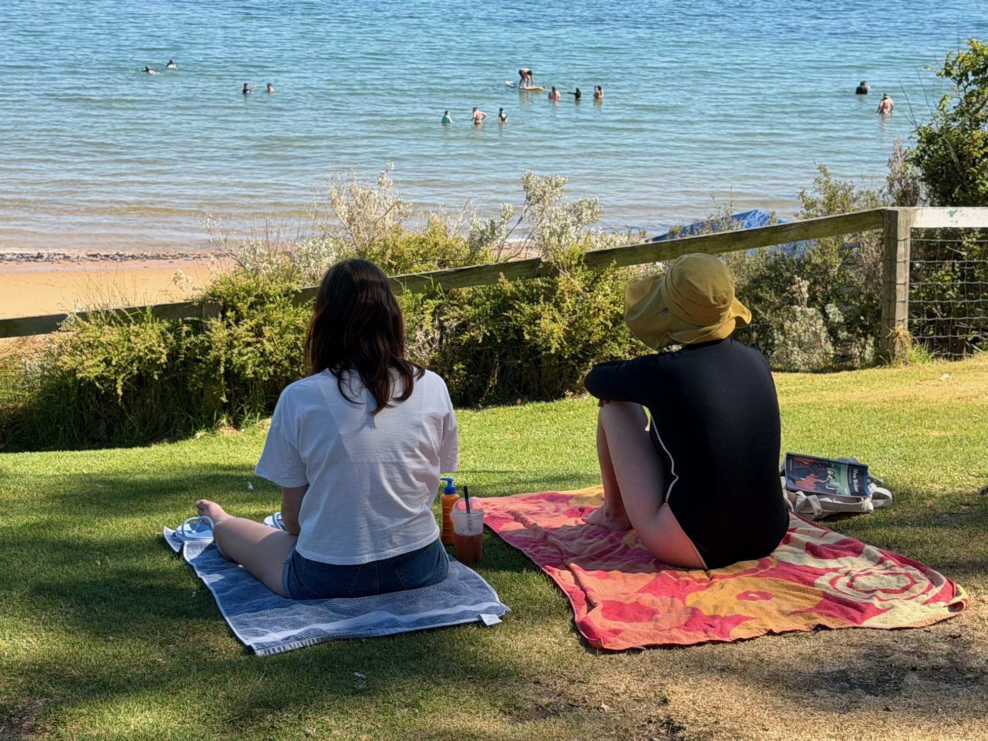 Some chose the shelter of colourful umbrellas or mini-marquees, while the kids were down by the water paddling or on boogie boards, and typically, out on the Cowes Jetty groups of teenage boys were leaping off the pier to shouts of approval from their mates.