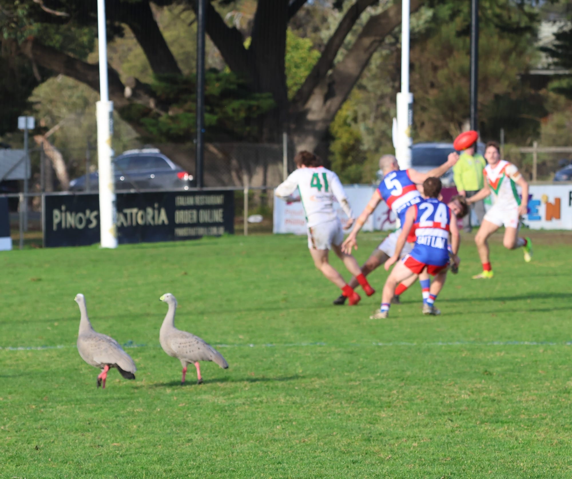 Seaguls and pesky geese both scattered by Phillip Island Bulldogs