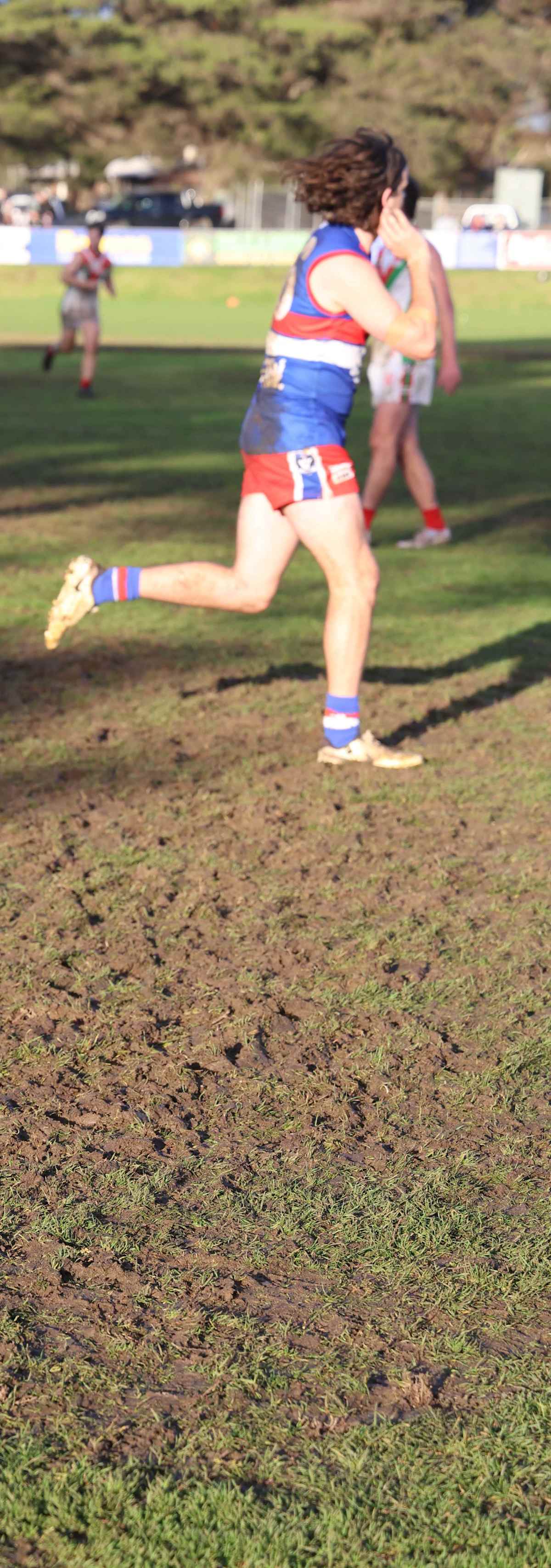 The other issue players had to contend with on the day was the muddy state of sections of the Cowes oval, despite the completion of a $300,000 drainage upgrade and resurfacing project last year.