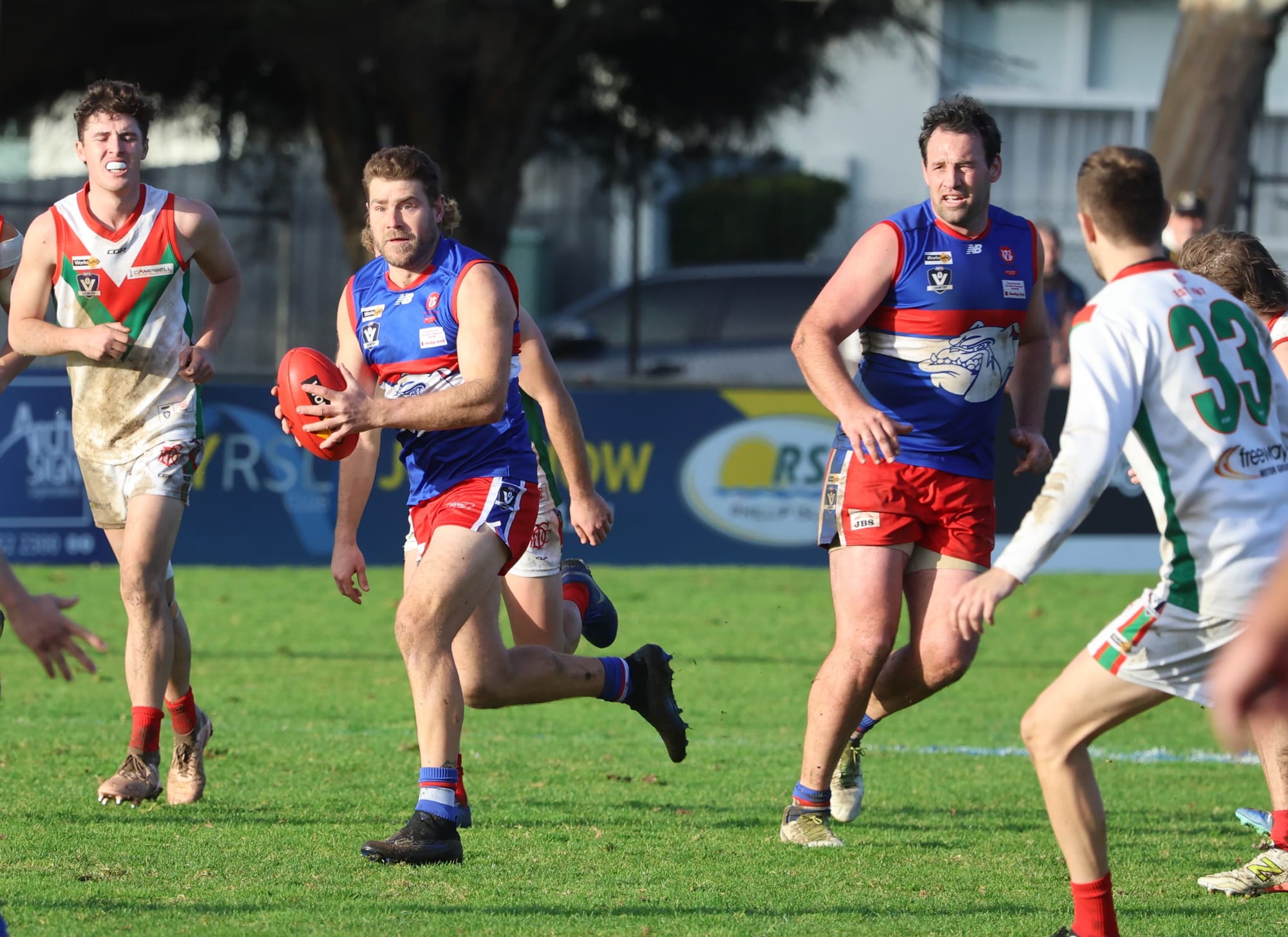 The Bulldogs increased their advantage at the end of each quarter, after an expected close opening term, with winners on every line, a competitive on-ball unit and plenty of firepower up forward including from the coach himself Cam Pedersen with five, Brendan Kimber with four and two in-a-row by Billy Taylor in the third quarter.