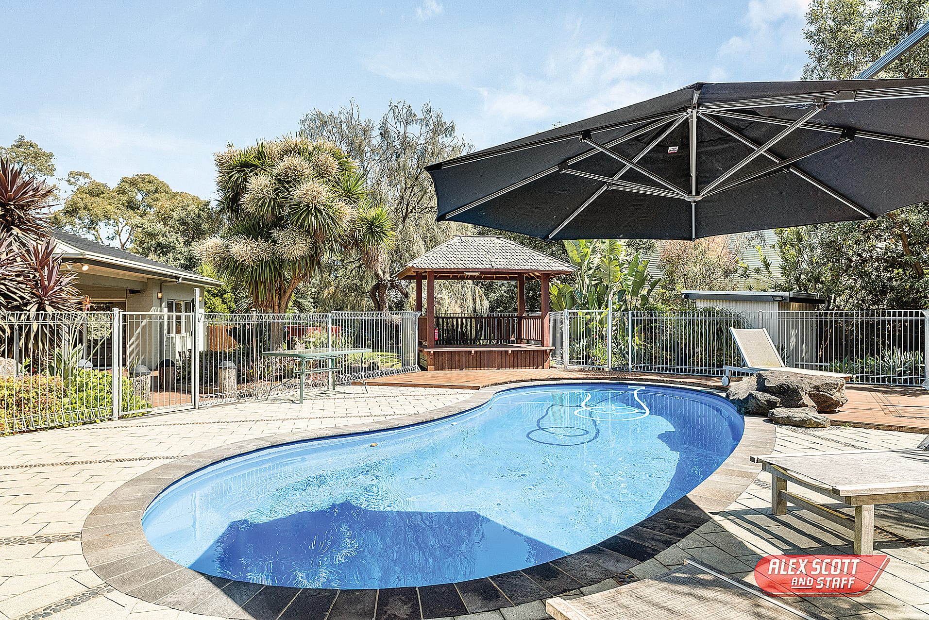 The master bedroom is more like a suite, it has a walk-through robe, large ensuite and looks out to a secret garden. A second master bedroom connects to the second bathroom and the third bedroom is big enough for a king size bed. The home has secure entry from a two and half car garage. As you would expect the property has a beautiful swimming pool with a Bali style gazebo and a walled fire pit to enjoy those family get togethers under the stars.