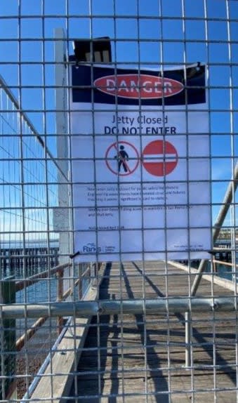 Barriers have been erected at the entrance to the jetty with advice messages posted.