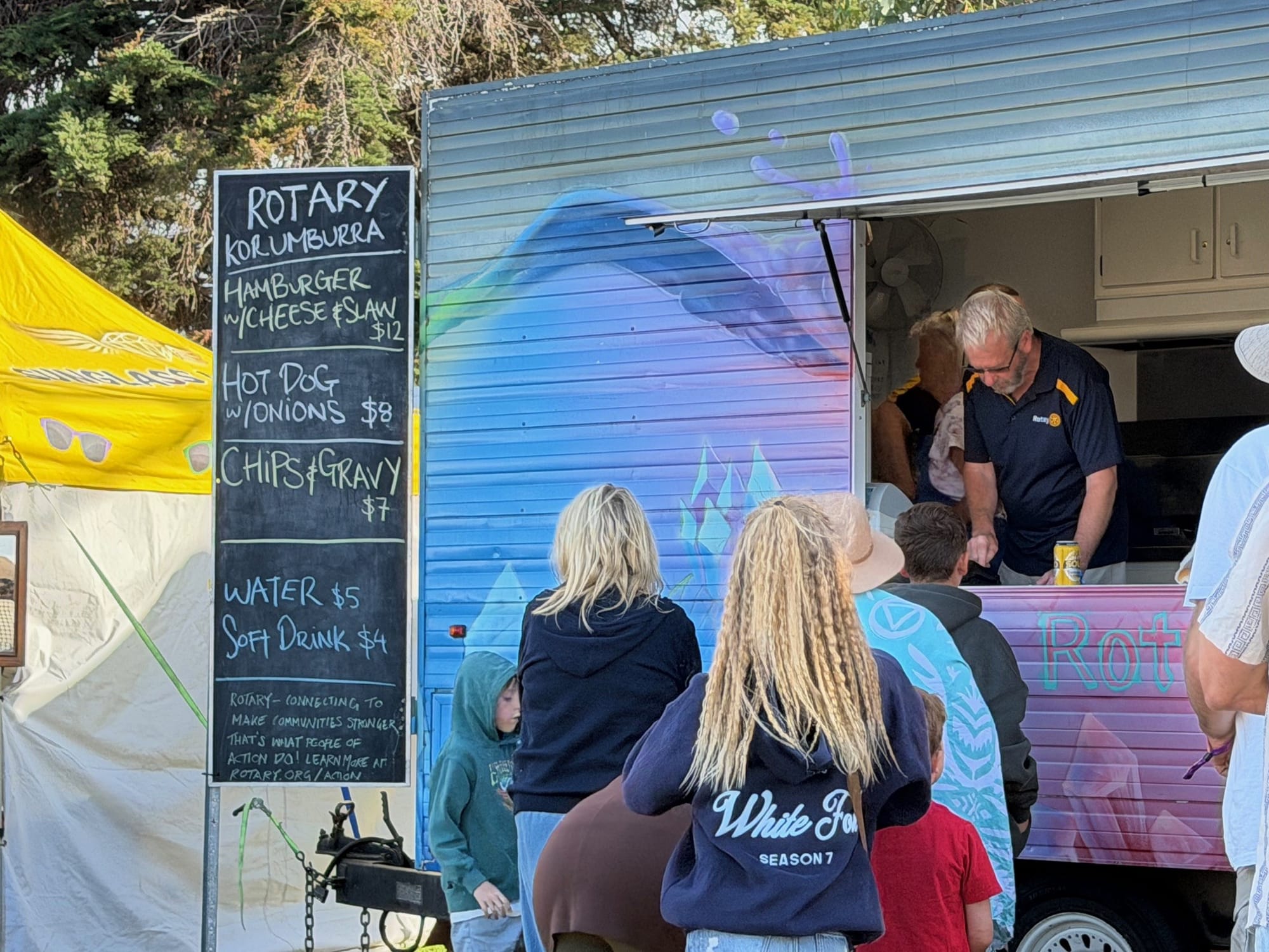 Food trucks offering a variety of fare were doing a brisk trade out back, including the Korumburra Rotary Club whose traditional burgers, hot dogs, and chips and gravy found a ready market among the alternative offerings of seafood paella, pork dumplings, Vietnamese favourites and pizza.
