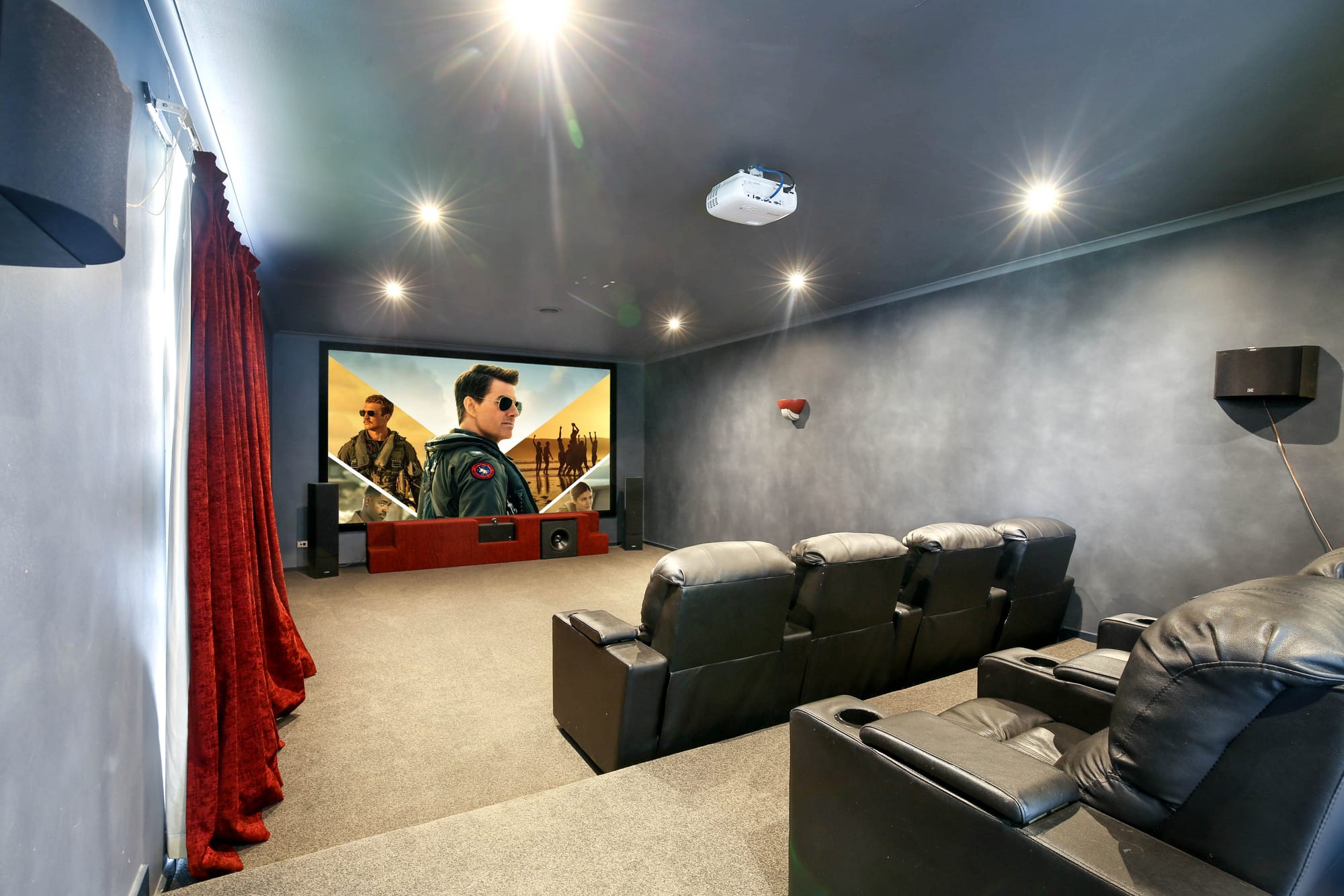 -The multipurpose room at the rear of the home will become a great space for entertaining with a solid wood fire, built in brick bar with sink and the fully soundproofed theatre room offers yet another great space to sit back, relax and enjoy your favourite movies with family and friends on one of the 8 leather recliners.