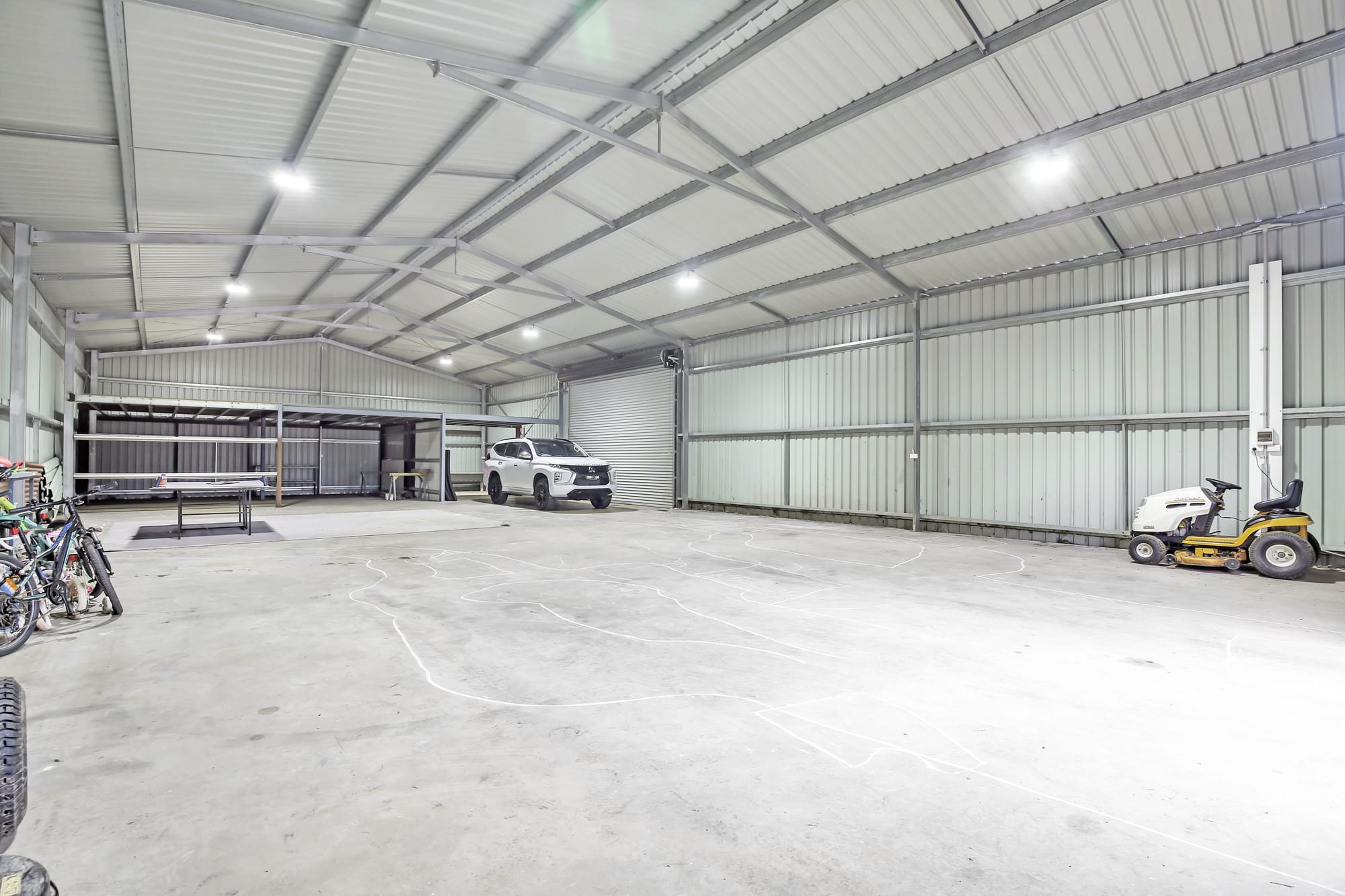 -An enormous 24m x 12m lock up shed, with a concrete floor, power, lights, mezzanine storage and 4 roller doors. (One door has a 3.8m height clearance)