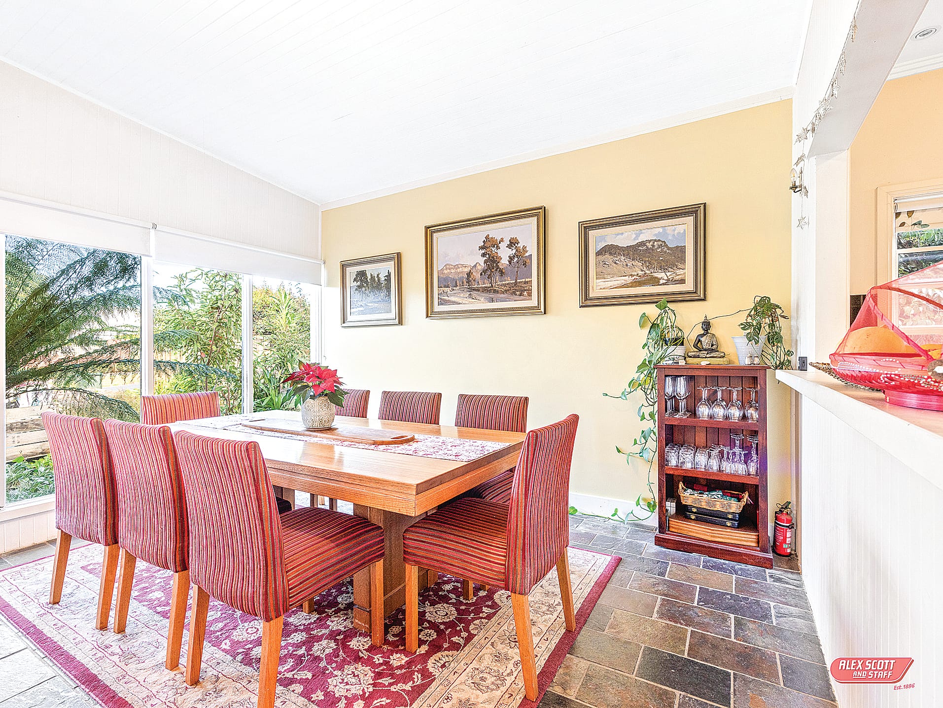Be wowed upon entry into the home with so many features drawing your eye to different areas of the home. High ceilings with ornate cornice, polished timber floorboards, chandeliers, craftsman timber spiral staircase, large windows and much more! Featuring an open plan living area with the wood fire heater being a centre focus with ample light flooding in through the wide set of windows. The kitchen is connected by a large servery window into the dining room, it showcases a 900mm freestanding oven, timber bench tops, near new dishwasher and butler’s pantry.
