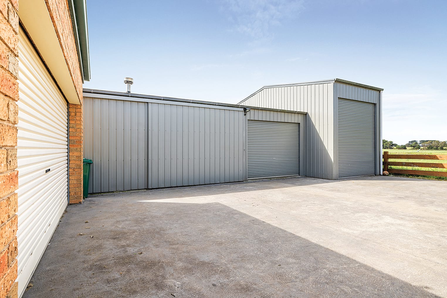 Automatic gates at the front of the property offer security and safety for children and animals, whilst a double garage offers room for two cars to be parked securely. There is no shortage of shed space with a two-bay workshop/man cave complete with reverse cycle air conditioner and wood heater, plus a further two bays (one with high clearance) perfect for car/boat/caravan accommodation. A 110,000L water tank ensures no shortage of water.