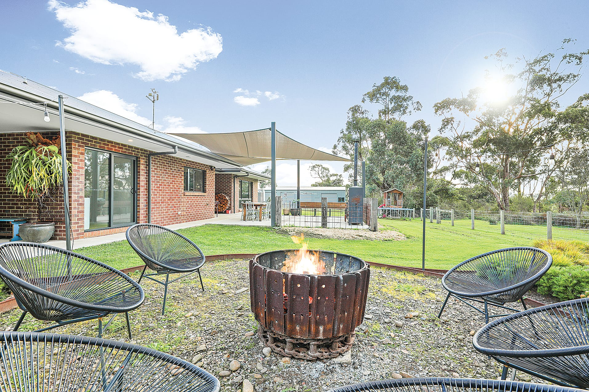 This property has been set up to maximise the best of country living. With lovely gardens including an orchard, raspberry patch and enclosed veggie boxes. The outdoor enjoyment continues with a fire pit area, a playground for the kids, and a large 16.5 x 9 metre lock up shed, with four electric roller doors, concrete floors, and power. In addition to town water the 45,000-litre tank water supply can be used for home or garden.