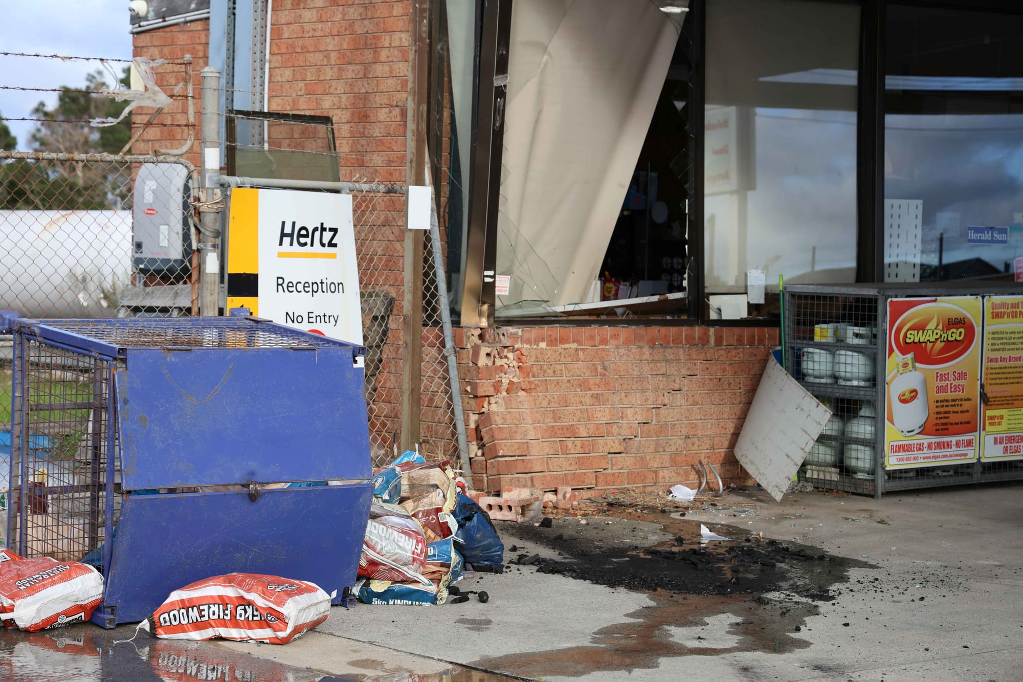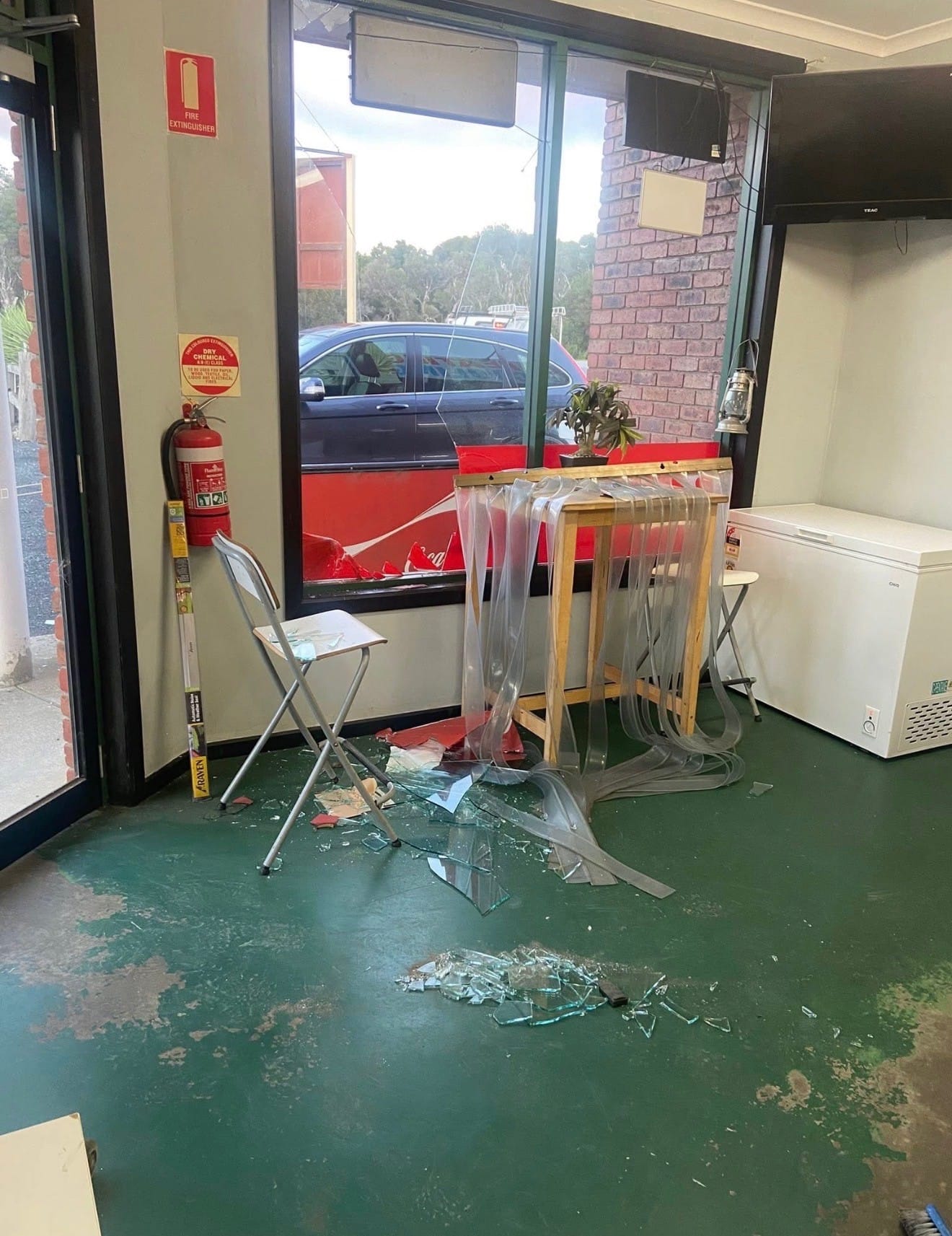 What could be seen from the outside was an extensively damaged front corner of the building with brickwork smashed in and the front window shattered providing the offenders with access to the premises.
