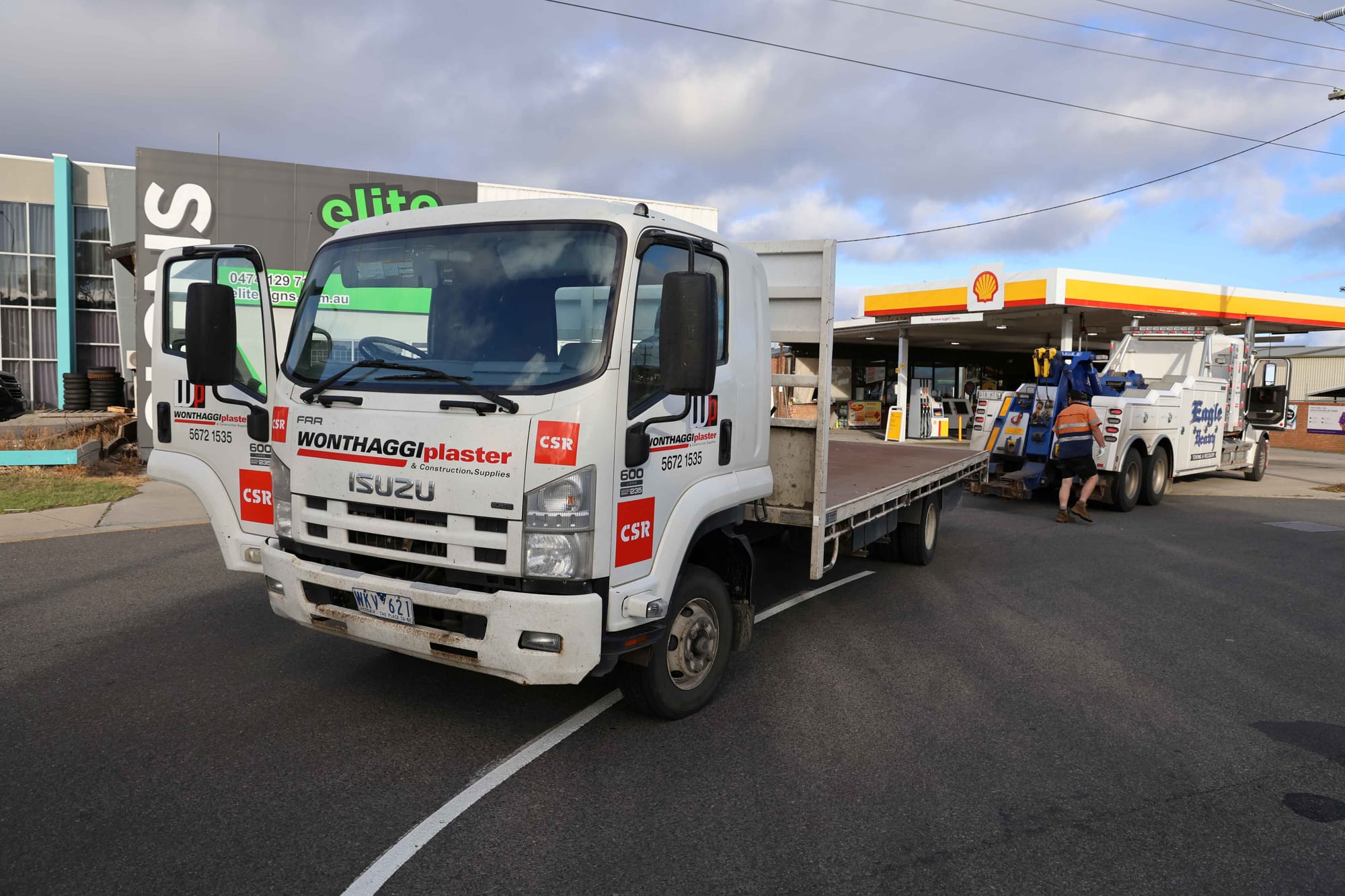 The vehicle used by burglars to do all the damage was parked across the service lane in front of the Shell petrol station, a stolen Isuzu tray truck from Wonthaggi Plaster and Construction Supplies in Inverloch Road.