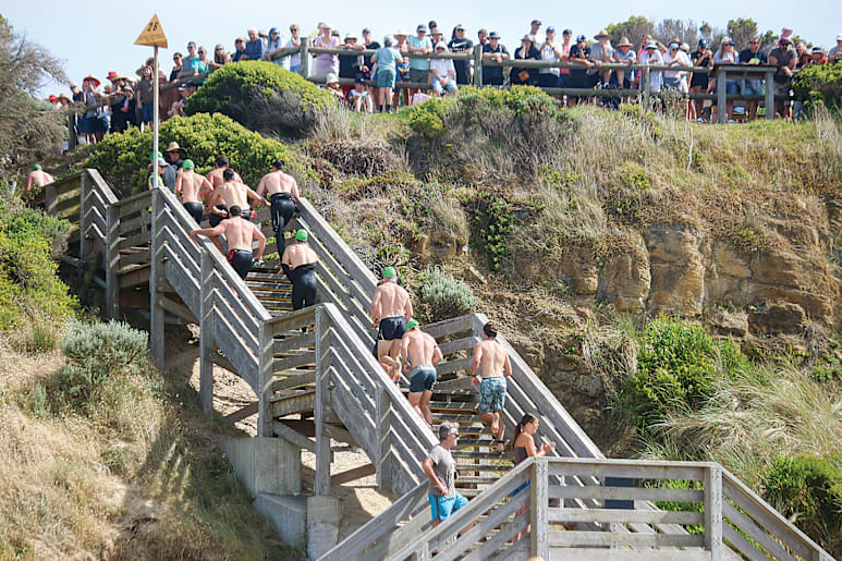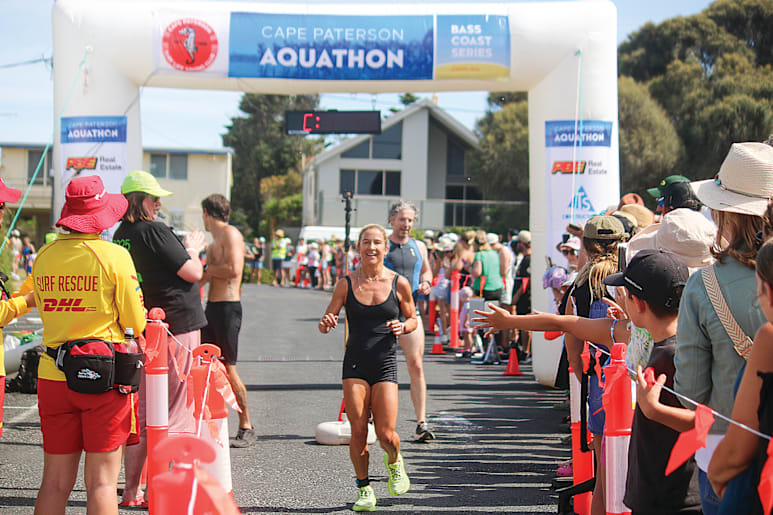 Swimmers then headed up the stairs to the transition area before completing a 4.4 kilometre run through the Cape Paterson headland, down to the eco village and back to the Cape Paterson Surf Life Saving carpark.
