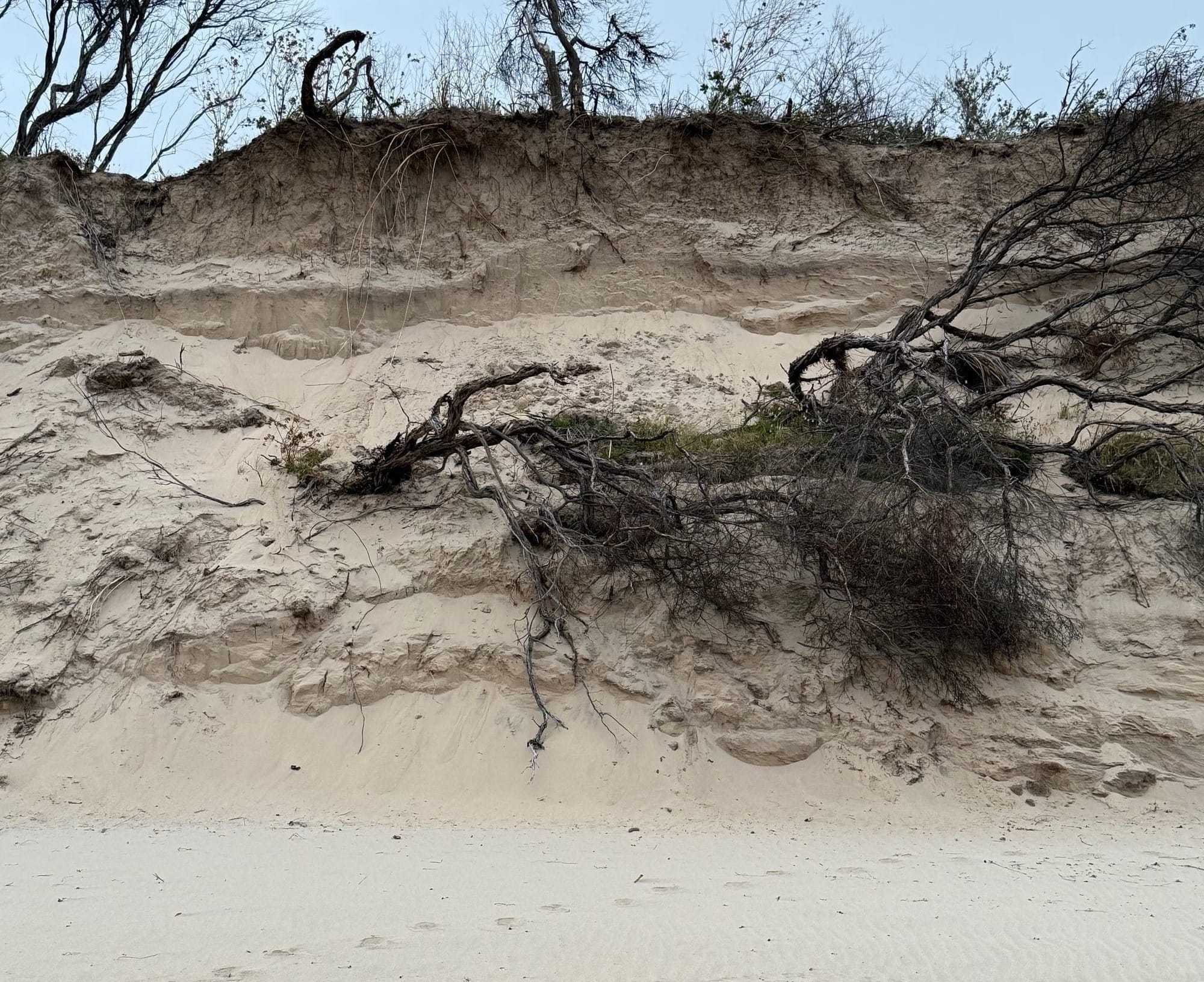 The club, built 80 metres from the water in 2010, now sits just 16 metres from the eroding dune face.