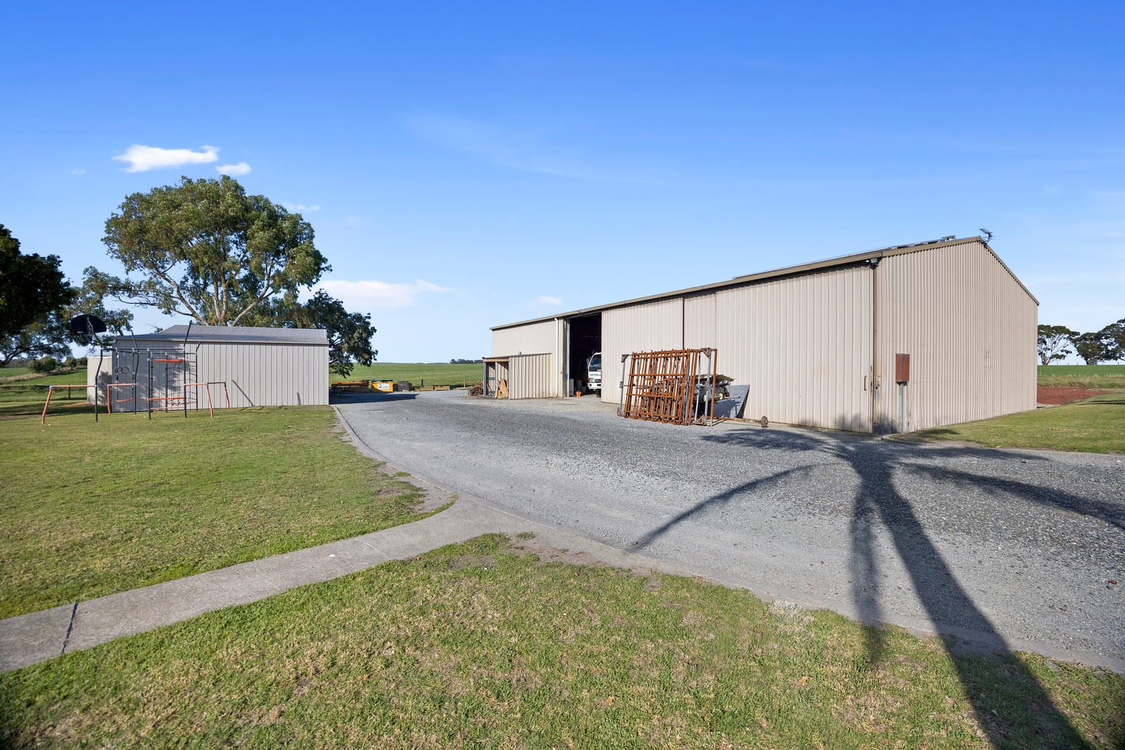 This shed includes a man cave, mezzanine floor, power, 8.8kw solar system and five sliding doors for ease of access.