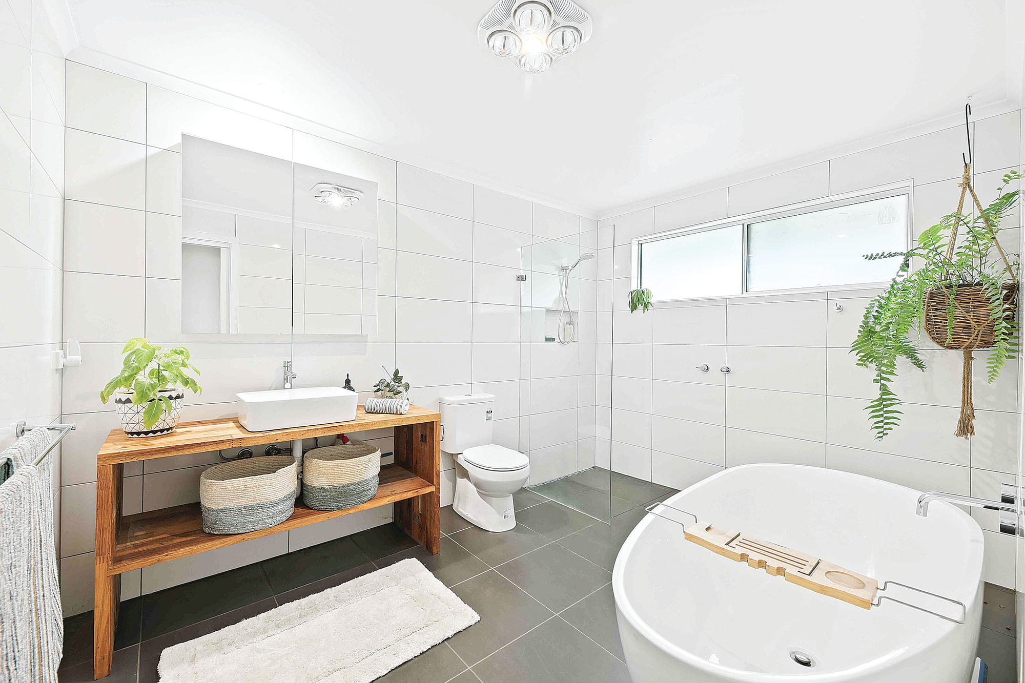 The second bathroom servicing the spare bedrooms is enormous, featuring a freestanding bath, walk-in shower and toilet. Other feature inside includes a cosy wood fire, reverse cycle split system, ceiling fans, polished floorboards through the living spaces and tiles through the wet areas, large laundry and more.