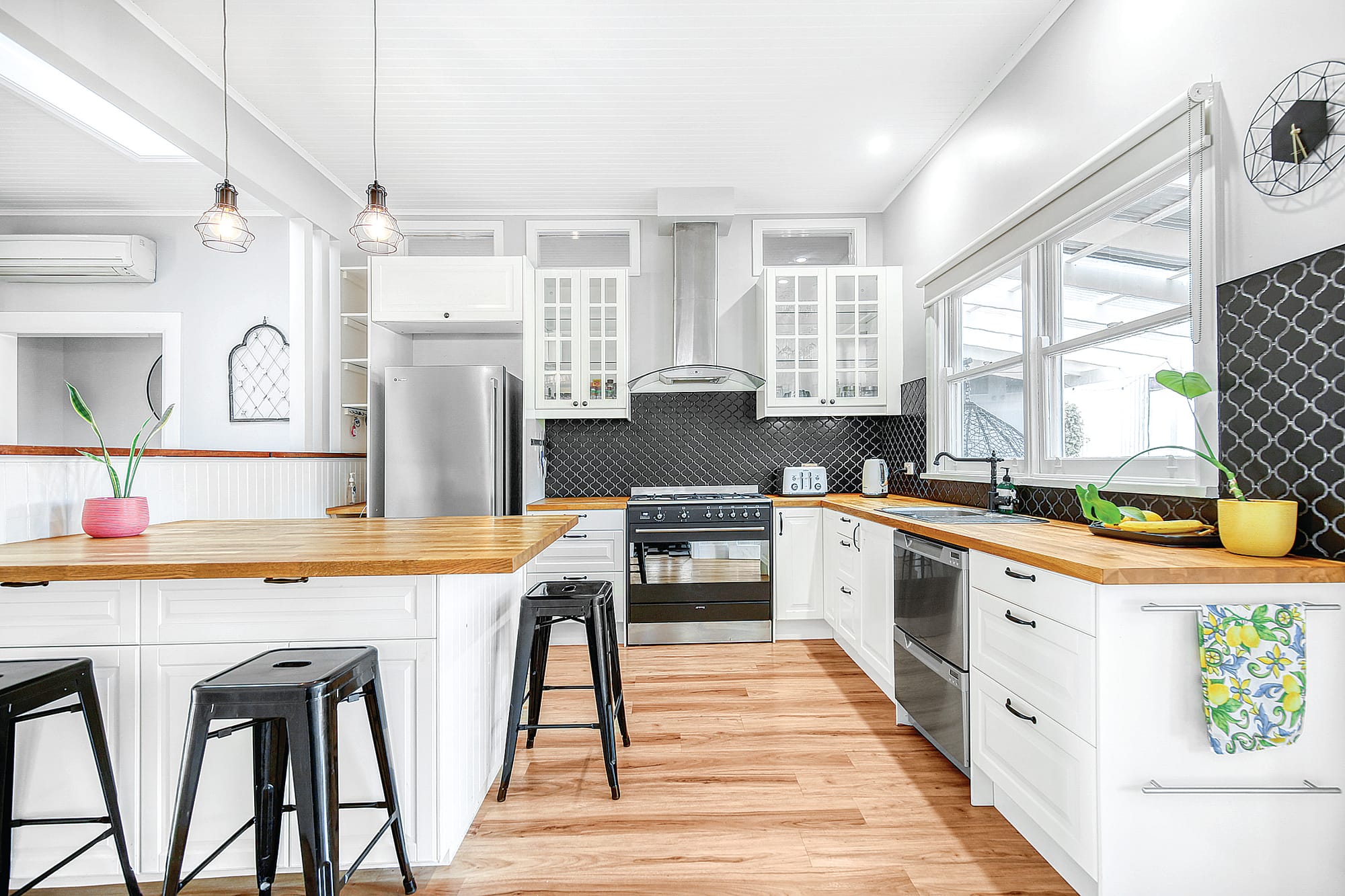 • A gorgeous, renovated kitchen with a massive breakfast bar and all modern appliances