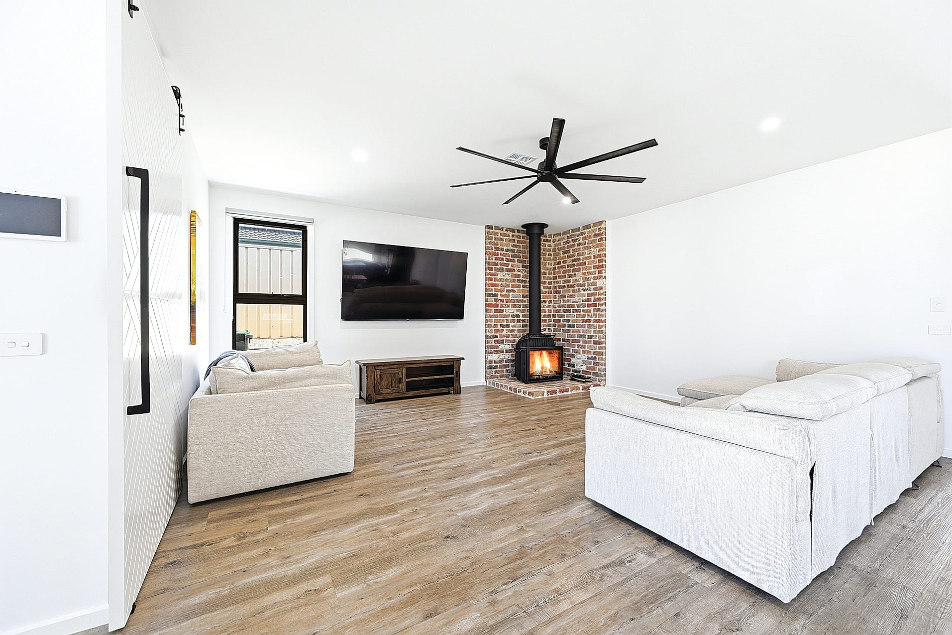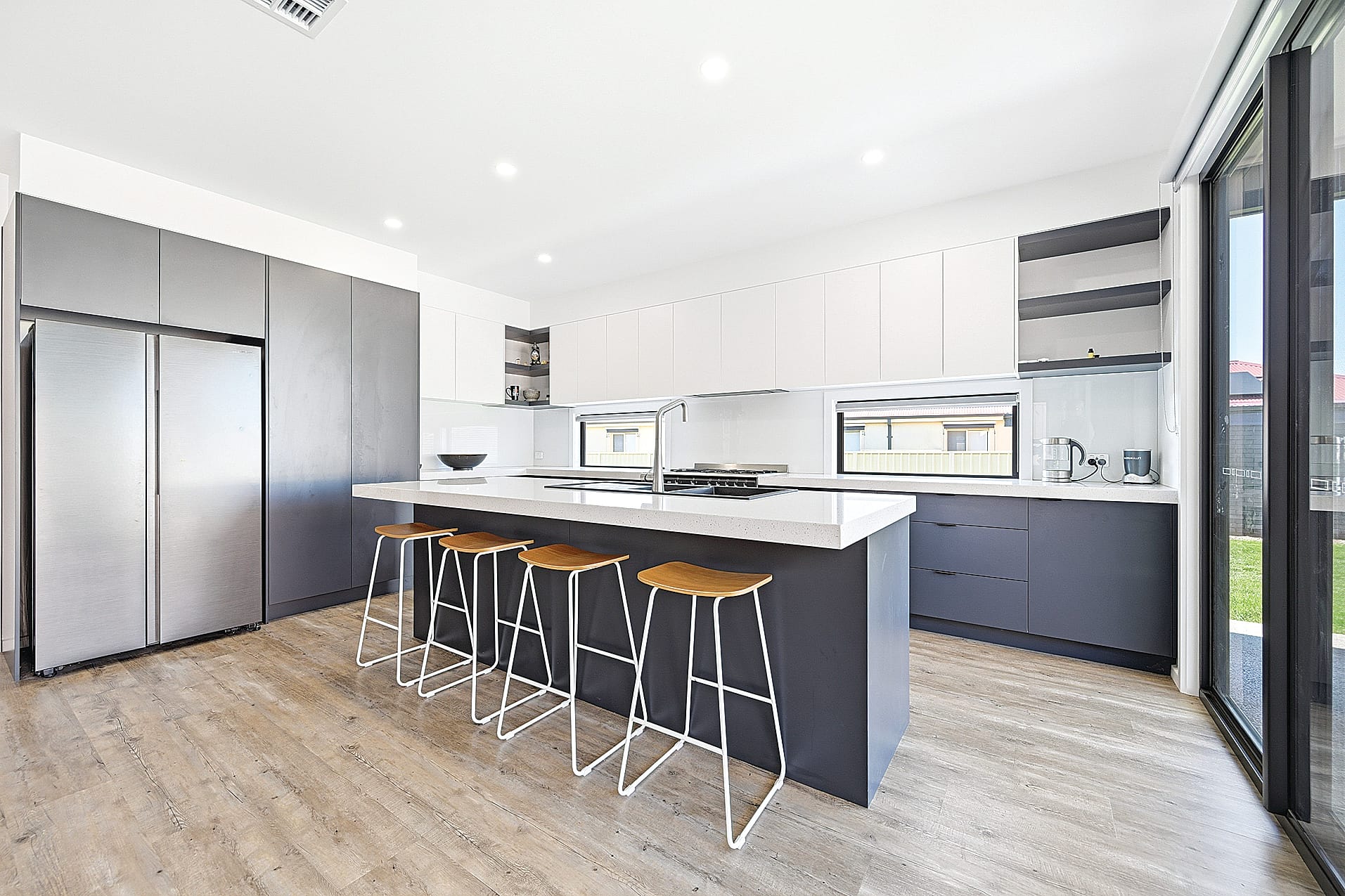 Two versatile living areas are perfect for entertaining or cosy family nights in, while the modern open-plan kitchen sits at the heart of the home and flows seamlessly to the indoor-outdoor living areas.