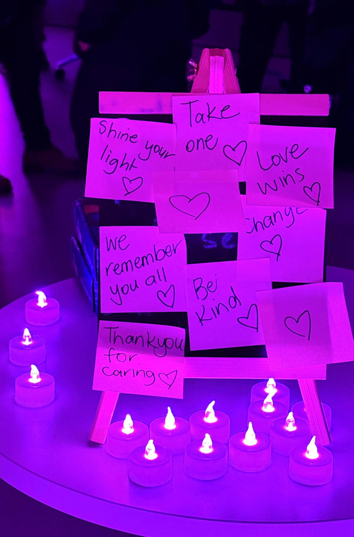 Speaking at the vigil, moved inside to the Berninneit Cultural Centre from the Jetty Triangle at Cowes due to the wet weather, Change for Sam coordinator Lija Matthews thank everyone for coming and those who had contributed to the success of the night.