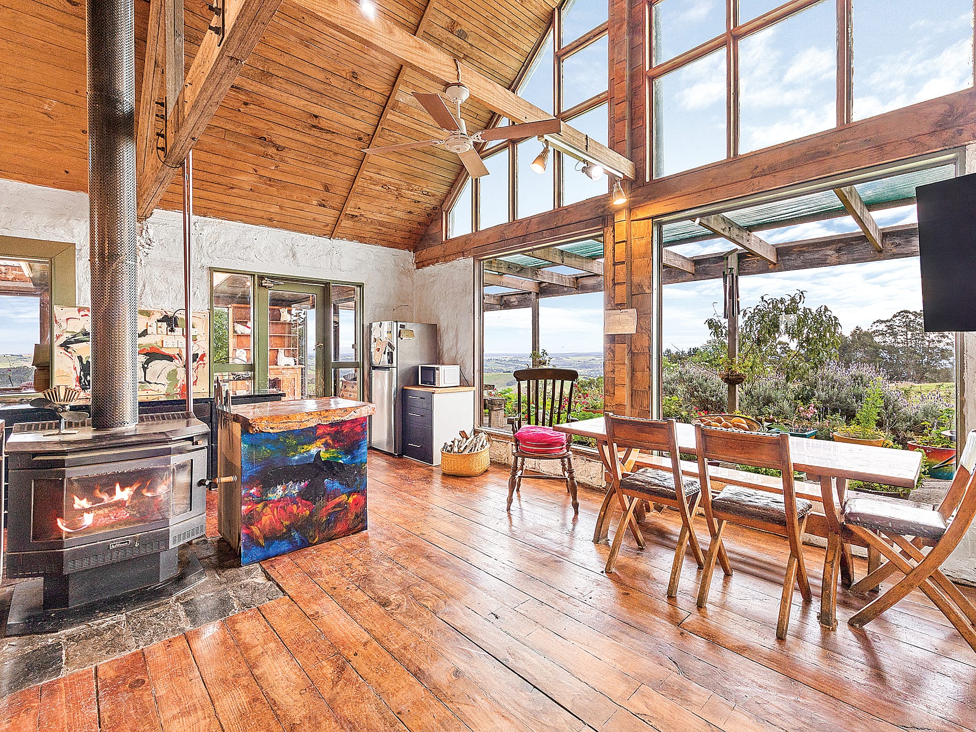 The two bedroom main homestead offers 180 degree views and has been built using timbers sourced and milled from the property itself.
