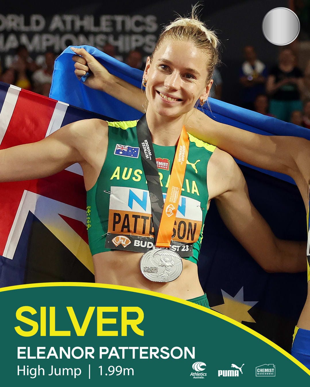 LEONGATHA’s Eleanor Patterson made a clutch jump, at her third attempt, at 1.97m to stay in the competition at Budapest, and then sailed straight over 1.99m to temporarily lead the field for the High Jump World Championship with a season best height.