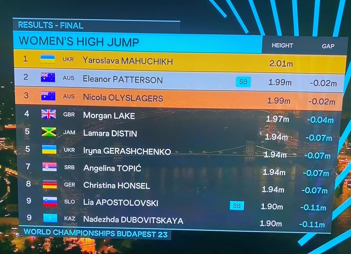Meanwhile, the Ukrainian Mahuchikh went comfortably over 2,01m at her first attempt to stand alone on the top step.