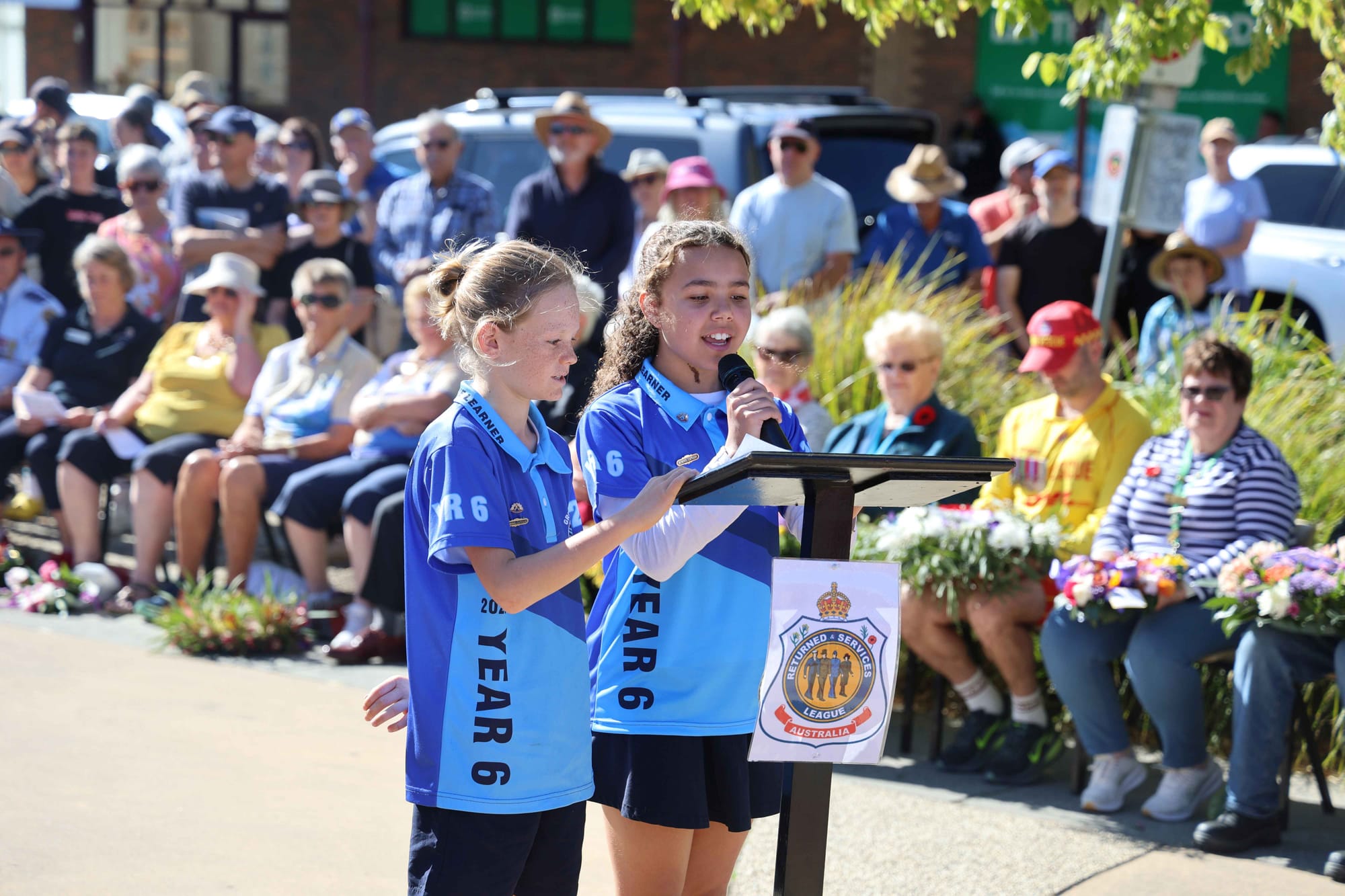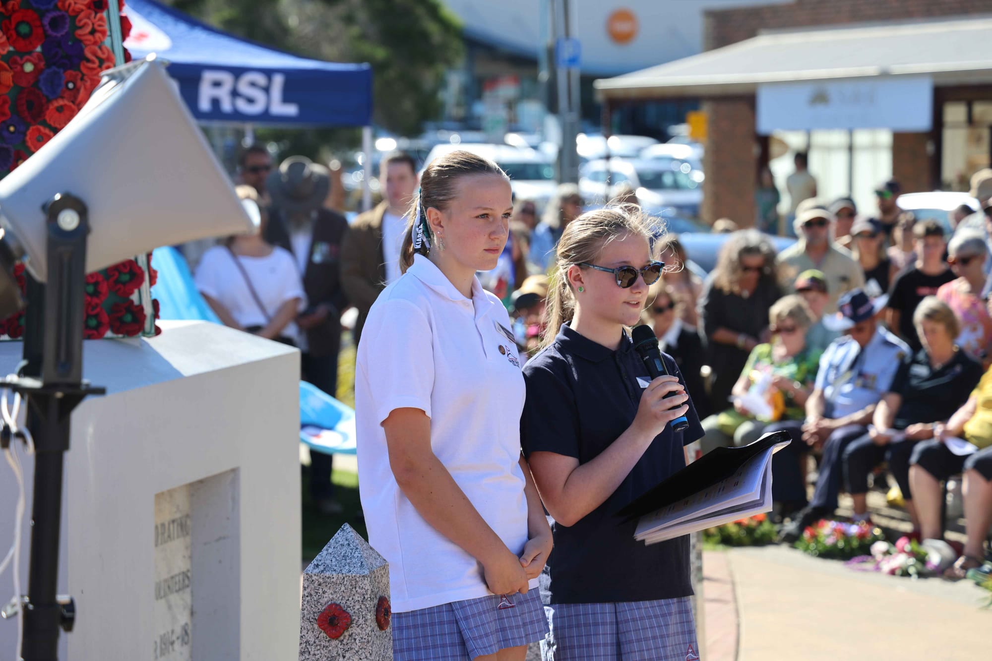 And there were significant contributions to the service by Inverloch Primary School students Oskar Lofgren, Alana Eddy and Rosie Sargent, along with Kiarra Spinks and Ruby Johnstone-Barsony of the Bass Coast Secondary College who read their own version of Flanders Fields.