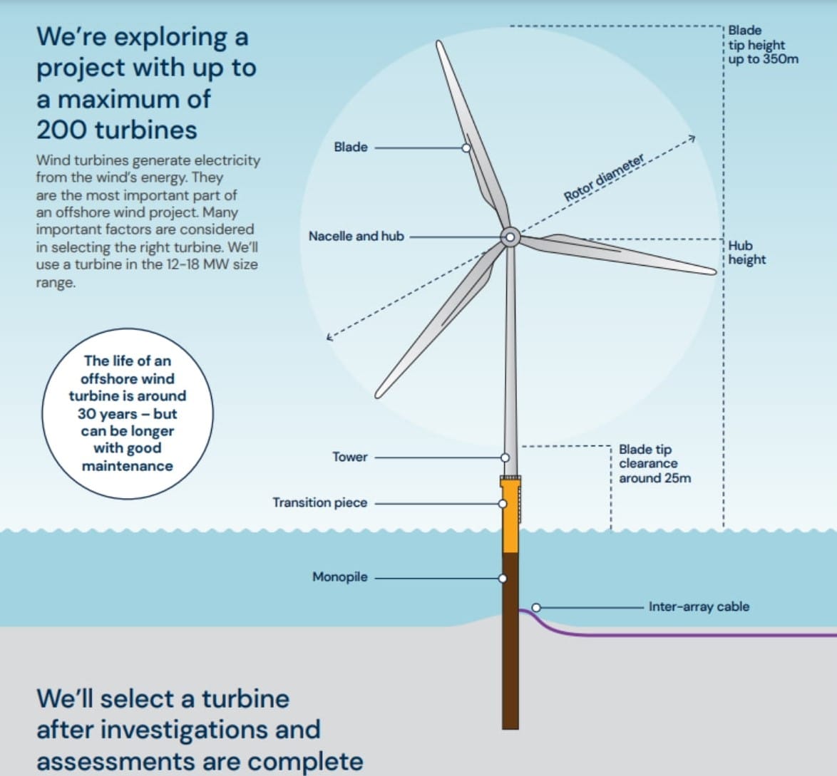 - According to one of the companies likely to develop an offshore wind farm, Star of the South, “the life of an offshore turbine is about 30 years” – what happens when the 350-metre-high structures have outlived their usefulness? Will the developers be responsible for de-constructing the turbines at the end of their life?