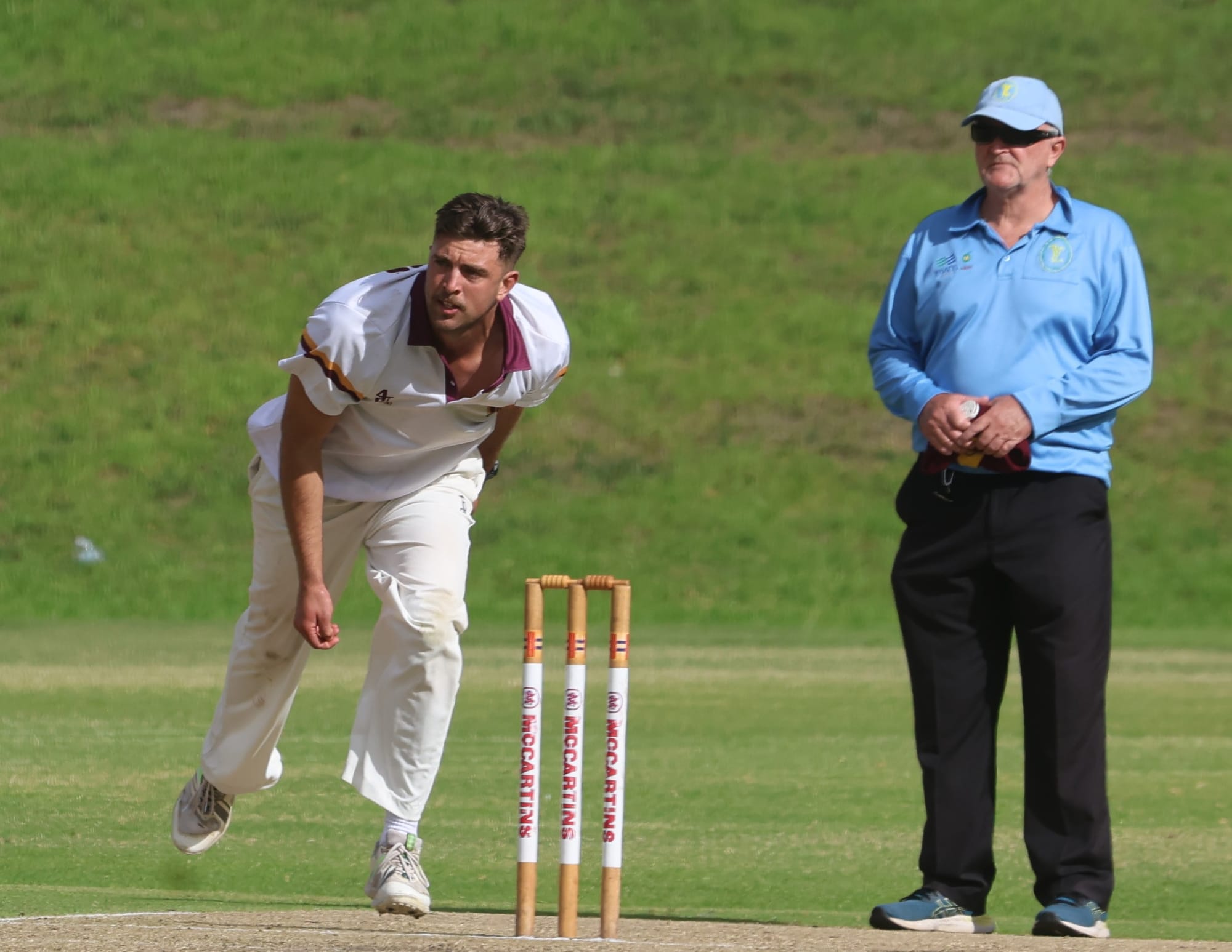 He became Singh’s third victim in the 70th over, out caught by Ethan Lamers, opening the way for another important knock by Fraser West, who, as well as taking the pressure off his partner Lochie McLean as he moved into the 80s and then 90s, contributed a free-flowing 28 of his own off 40 balls, including one towering six over the Leongatha Town social rooms.