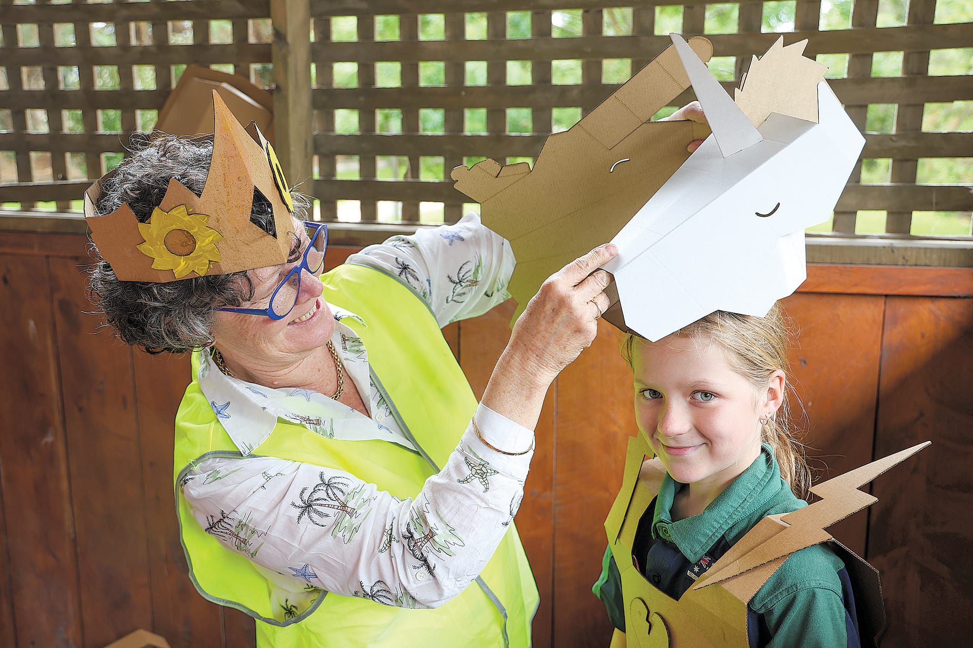An army of kids were seen dashing around the barbecue rotunda in cardboard armour and helmets with swords drawn, others were listening attentively as the creators of 12 ‘Real Pigeons’ books, Andrew McDonald and former Mirboo North Secondary School student Ben Wood, showed them how it was done, while members of Invy Horn Jam Band provided the soundtrack.
