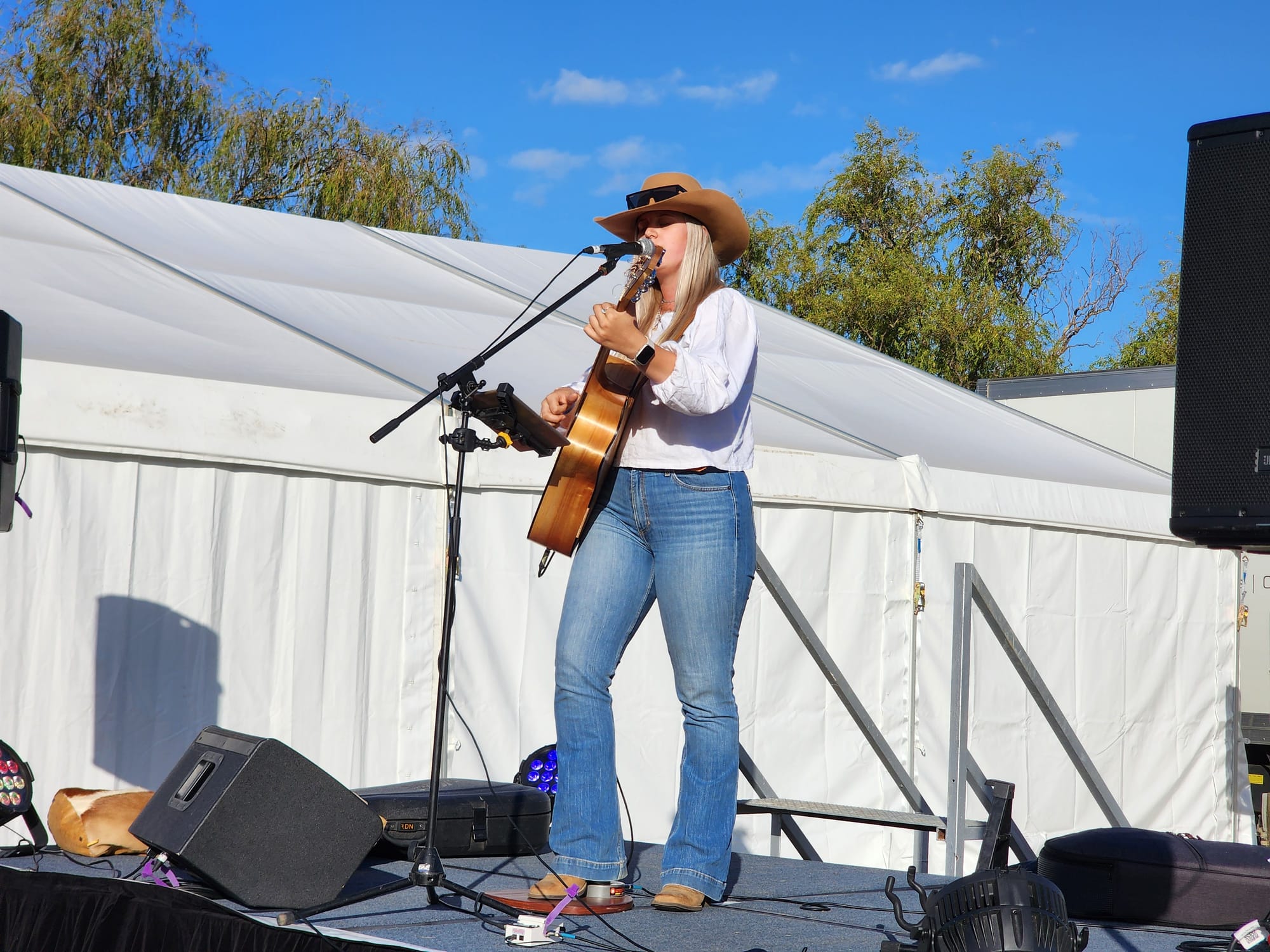 The large crowd has been entertained by local Island musician Imogen Price and the Freestyle Kings.