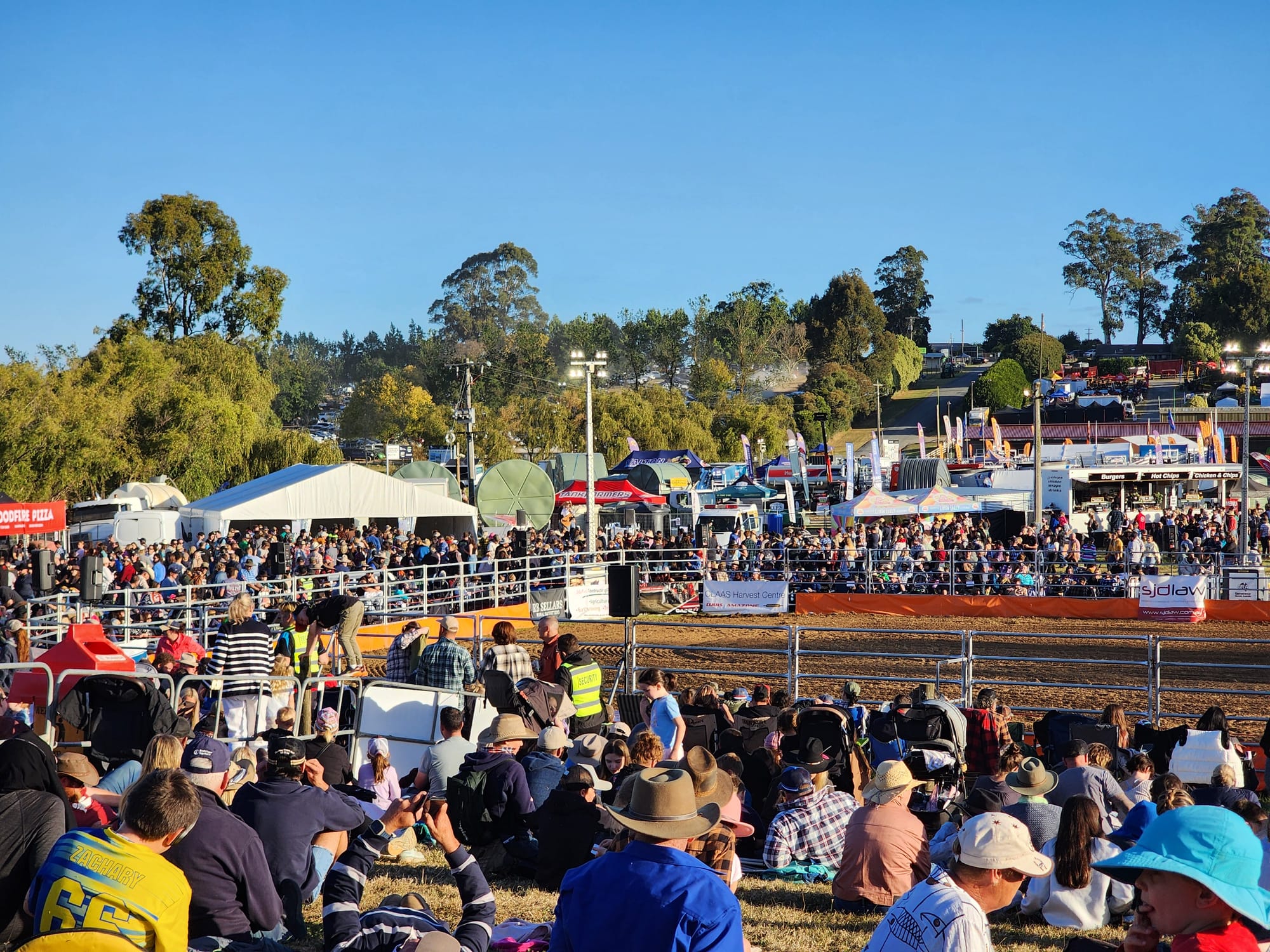 FARM World is well and truly underway with crowds gathering tonight for the rodeo which is scheduled to get underway in the next 15 minutes.