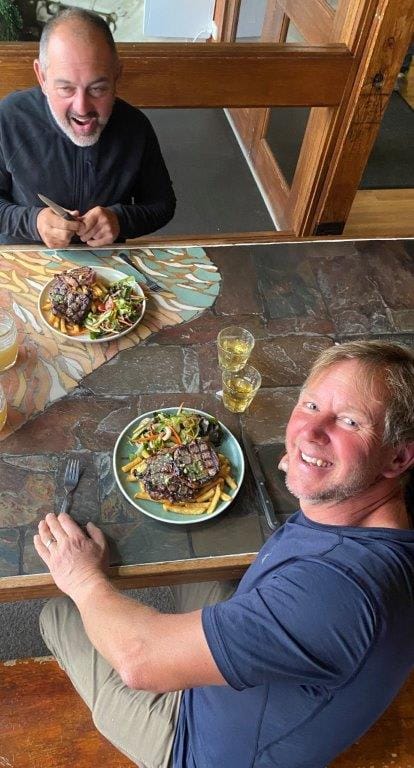 The pair have been living on dehydrated meals they cooked, dried, packed and placed in food stashes along the route during two months of preparations, so prime steak, sausages and all the trimmings was just what the doctor ordered.
