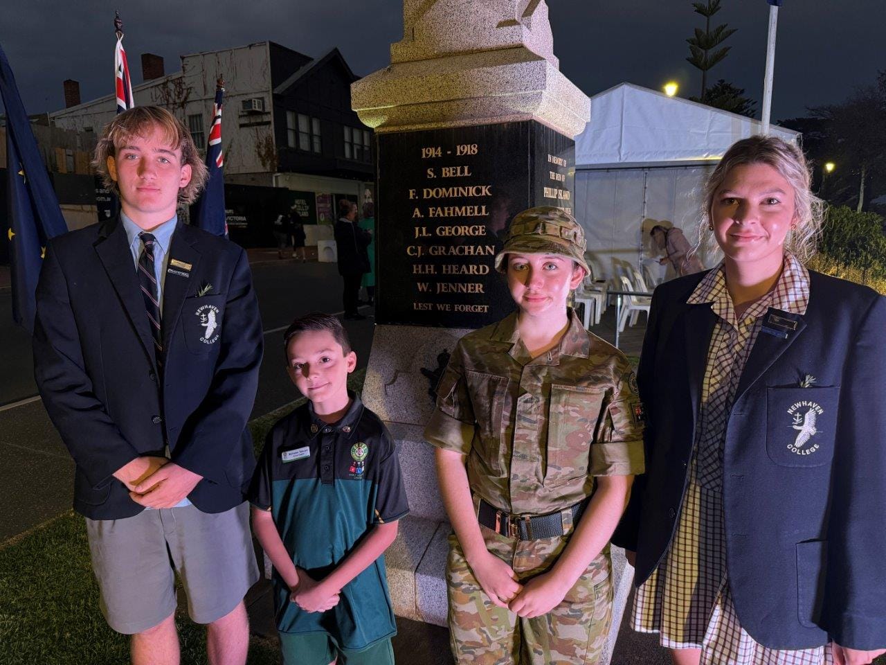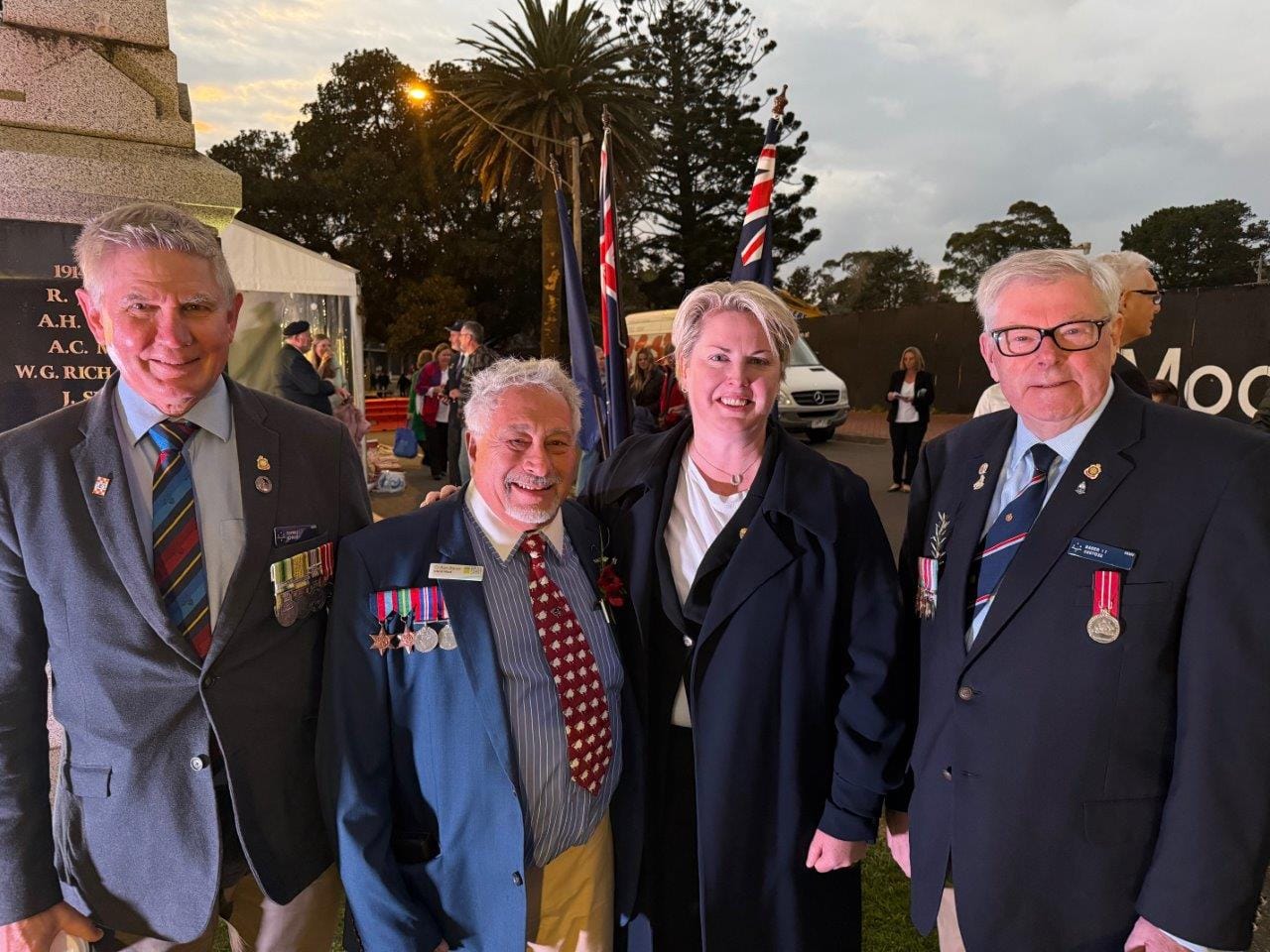 It’s interesting to note that the catafalque party, the guard of honour at the dawn service, was provided for the first time by members of the Phillip Island RSL including Lawrence Buck, Caleb de Kroon, Ameilia Fletcher and Michael Reardon trained by Michael Crump, who has served for many years as a member of armed services catafalque parties.