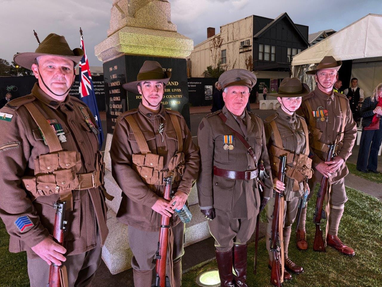 Members of the Australian Great War Association, the group had four engagements on the day, completing their commitment at Cowes in the mid-morning march before travelling to Oakleigh and Berwick events.
