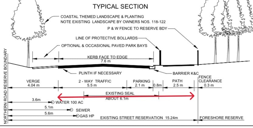 The brainchild of four community members and engineers, who claim a two-way road, parking and pathway can fit within the existing road reserve without encroaching on the foreshore reserve, it has been circulated to councillors.