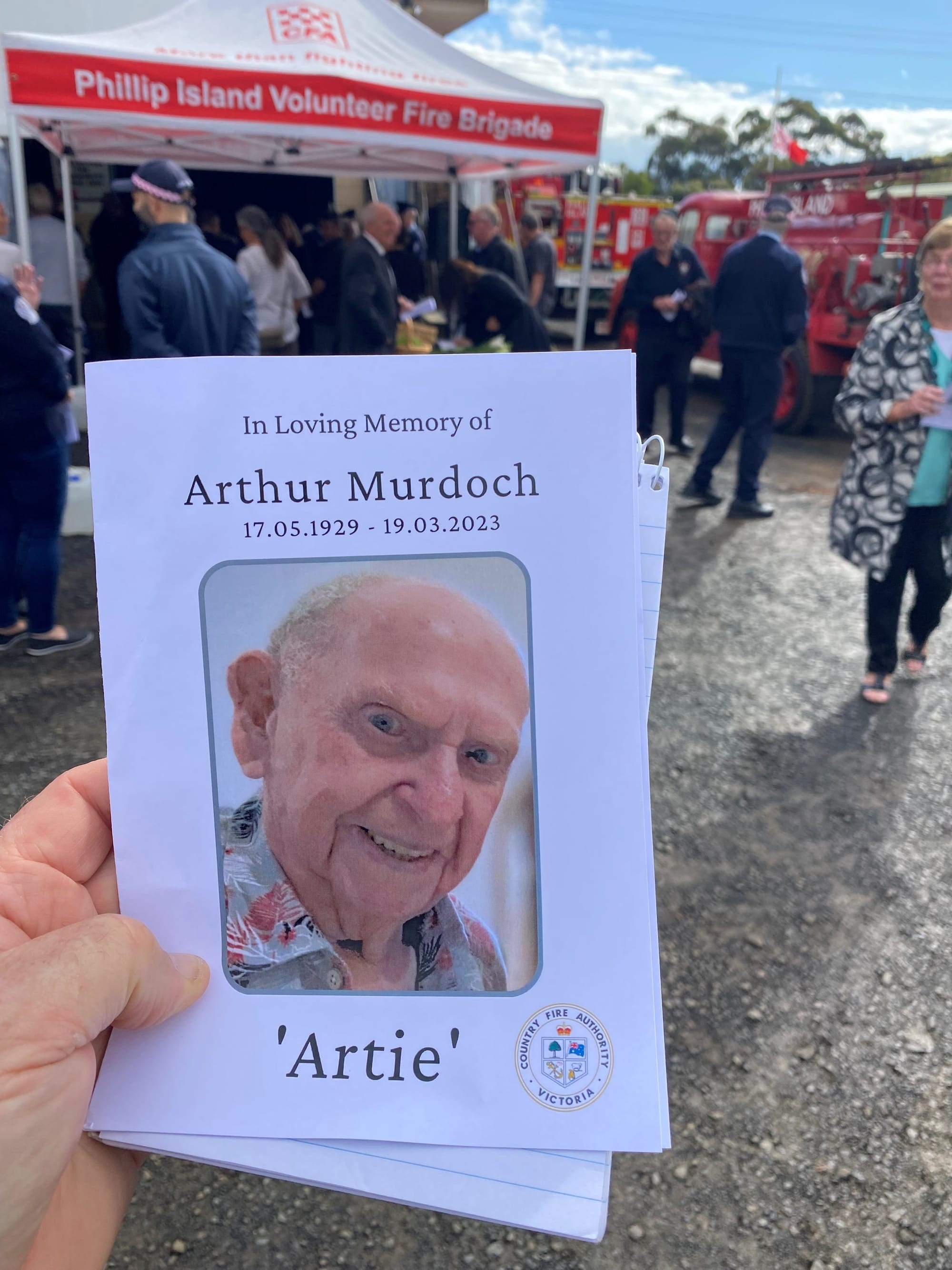 As detailed by CFA Assistant Chief Officer Trevor Owen, one of several CFA, SES and Ambulance Victoria leaders at the funeral, Arthur Murdoch joined the CFA at the age 11, on December 20, 1948, and was in his 75th year as a volunteer firefighter.