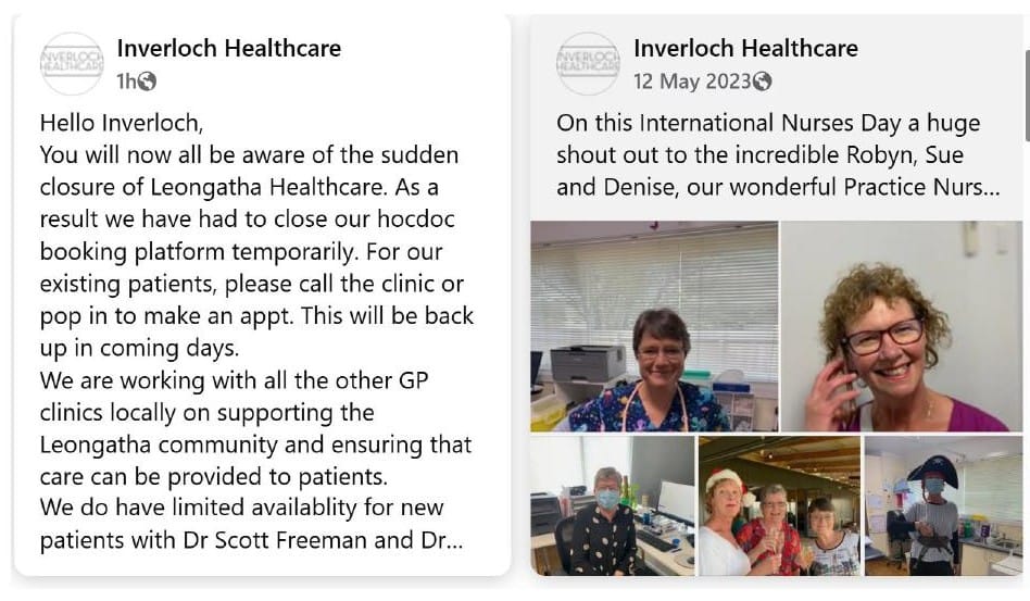 Here’s what Inverloch Healthcare posted this morning on their Facebook page: