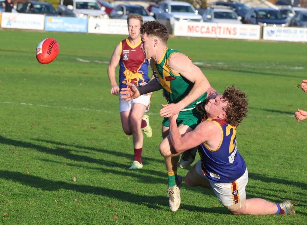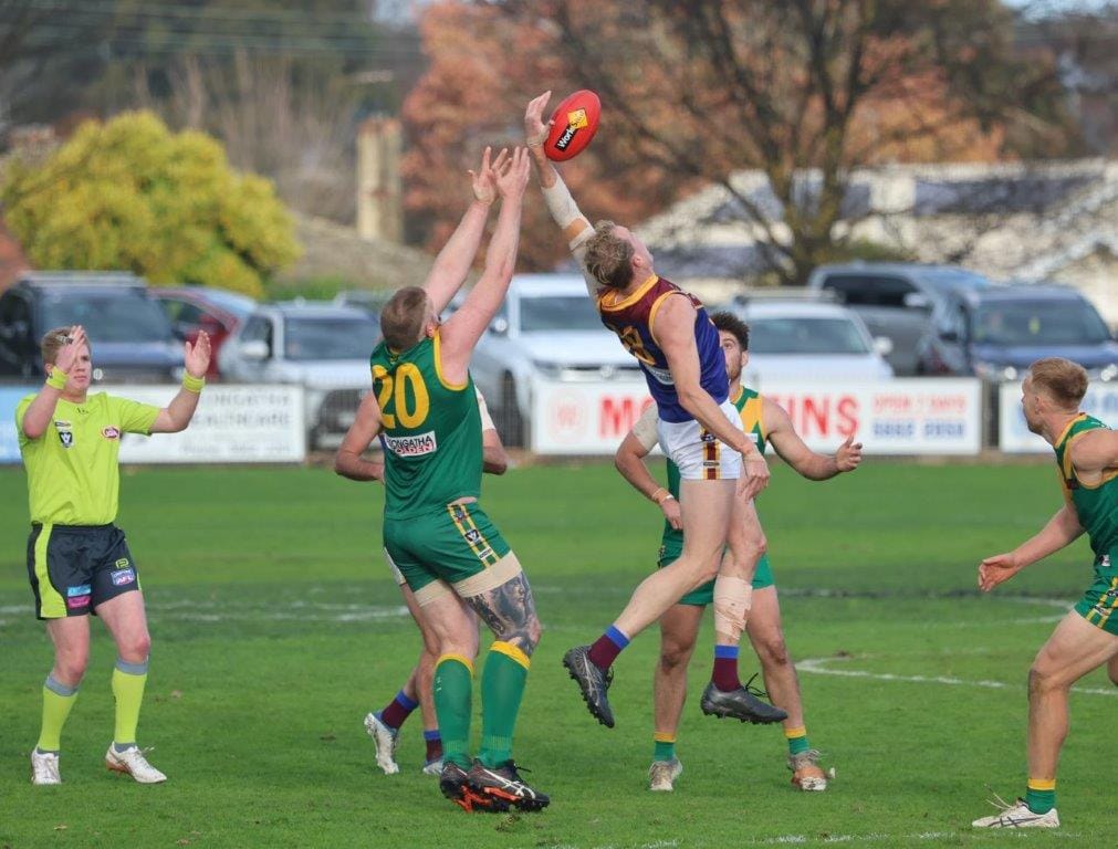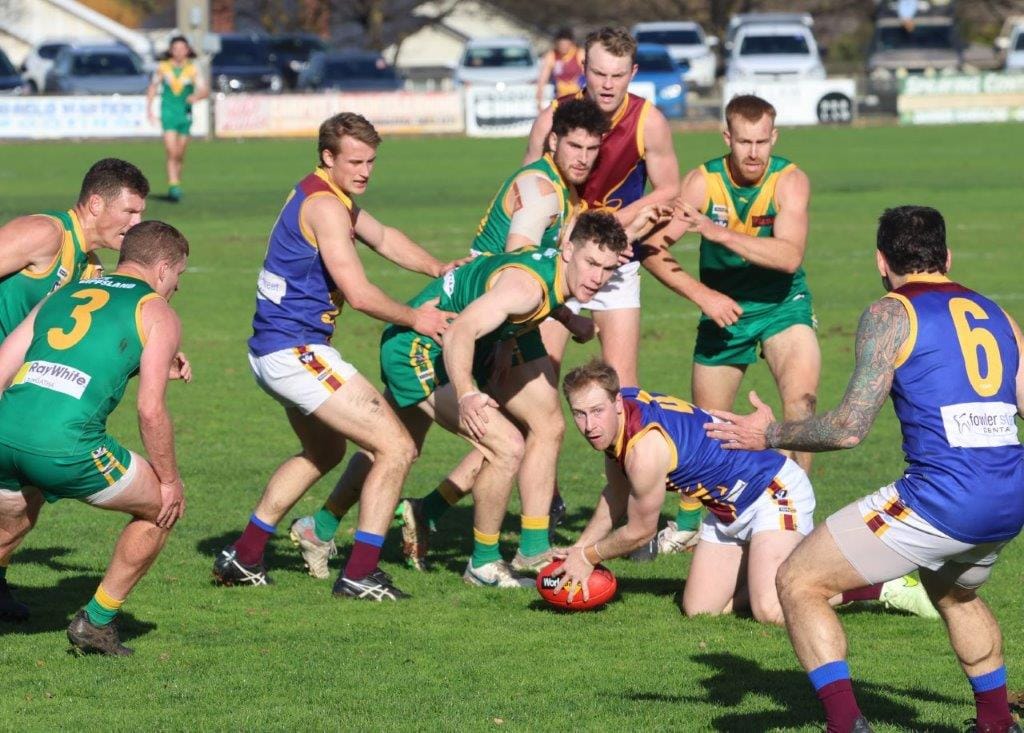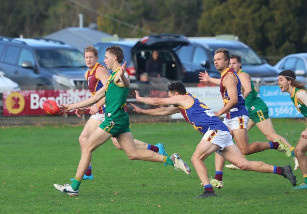 In his 150th game, big Ben Willis was having an impact, against good opposition in the ruck including Ben Morrow and new Moe beanpole Chris Prowse, not only getting his share of the taps but also tackling and following up on the lose ball in an inspirational effort. And while Moe had close checks on two of Leongatha’s key onballers, Tom Marriott and Aaron Heppell, who were given no space in which to work, Cam Olden, Kim Drew, Jack Hume, Jesse Burns and Luke Bowman were picking up the slack with Guy Dickson, Sean Westaway and Cade Maskell leading a stout defence.
