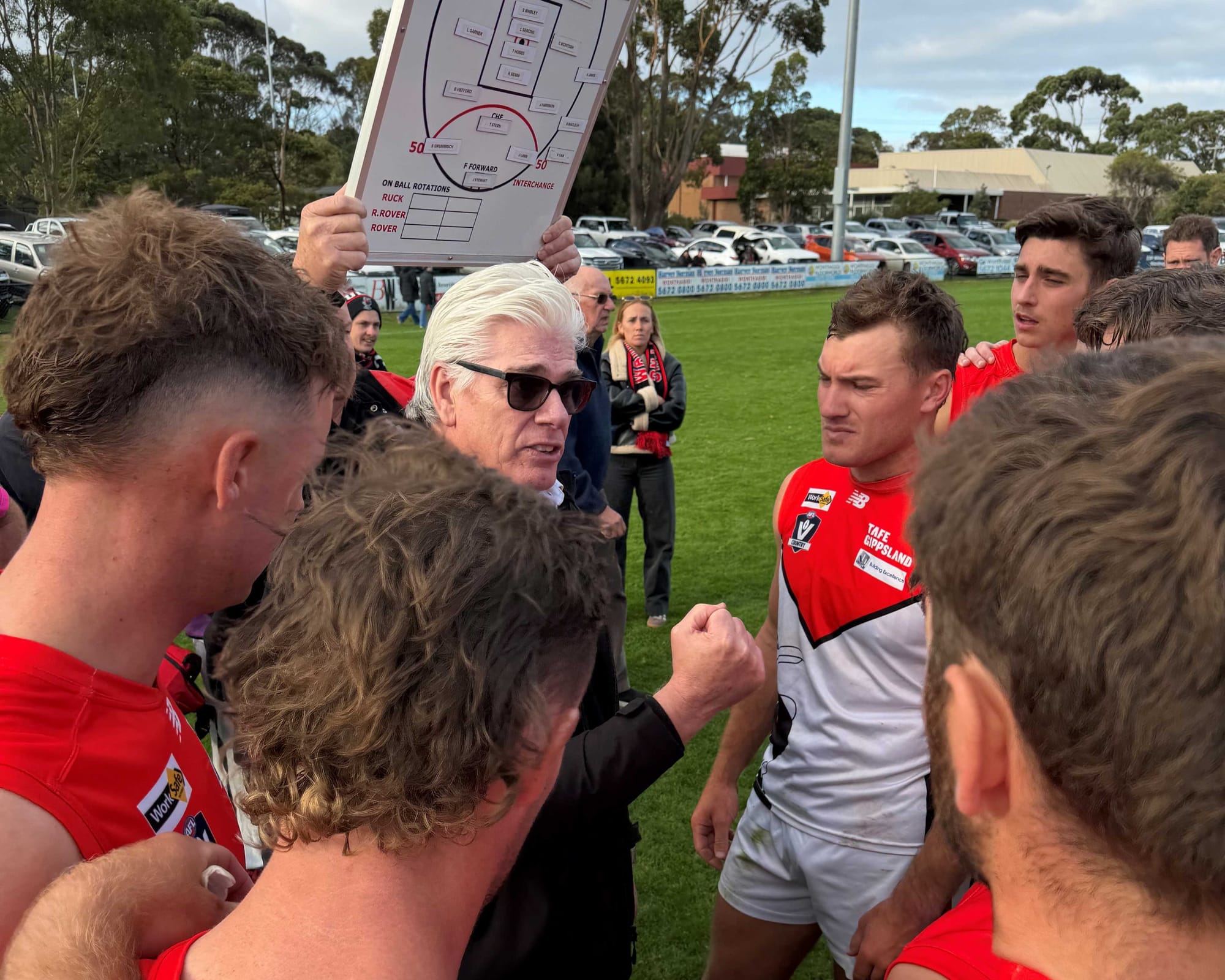 Five-time Hawthorn premiership player and two-club AFL coach, Gary Ayres, who was Wonthaggi coach Tristan Francis’ mentor at Port Melbourne, gave a rousing speech at the last break, urging his players to take up the challenge and they came out smoking.
