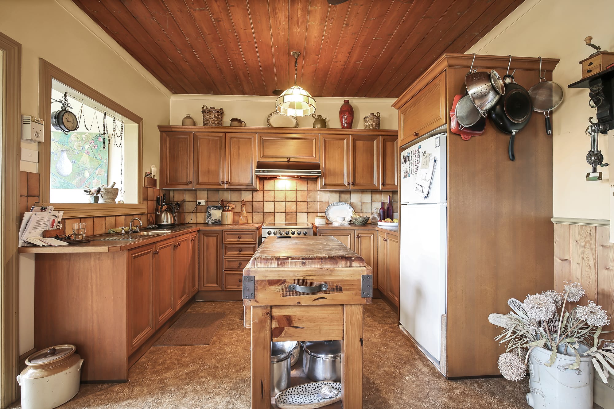 • A gorgeous country timber kitchen with electric cooking appliances.